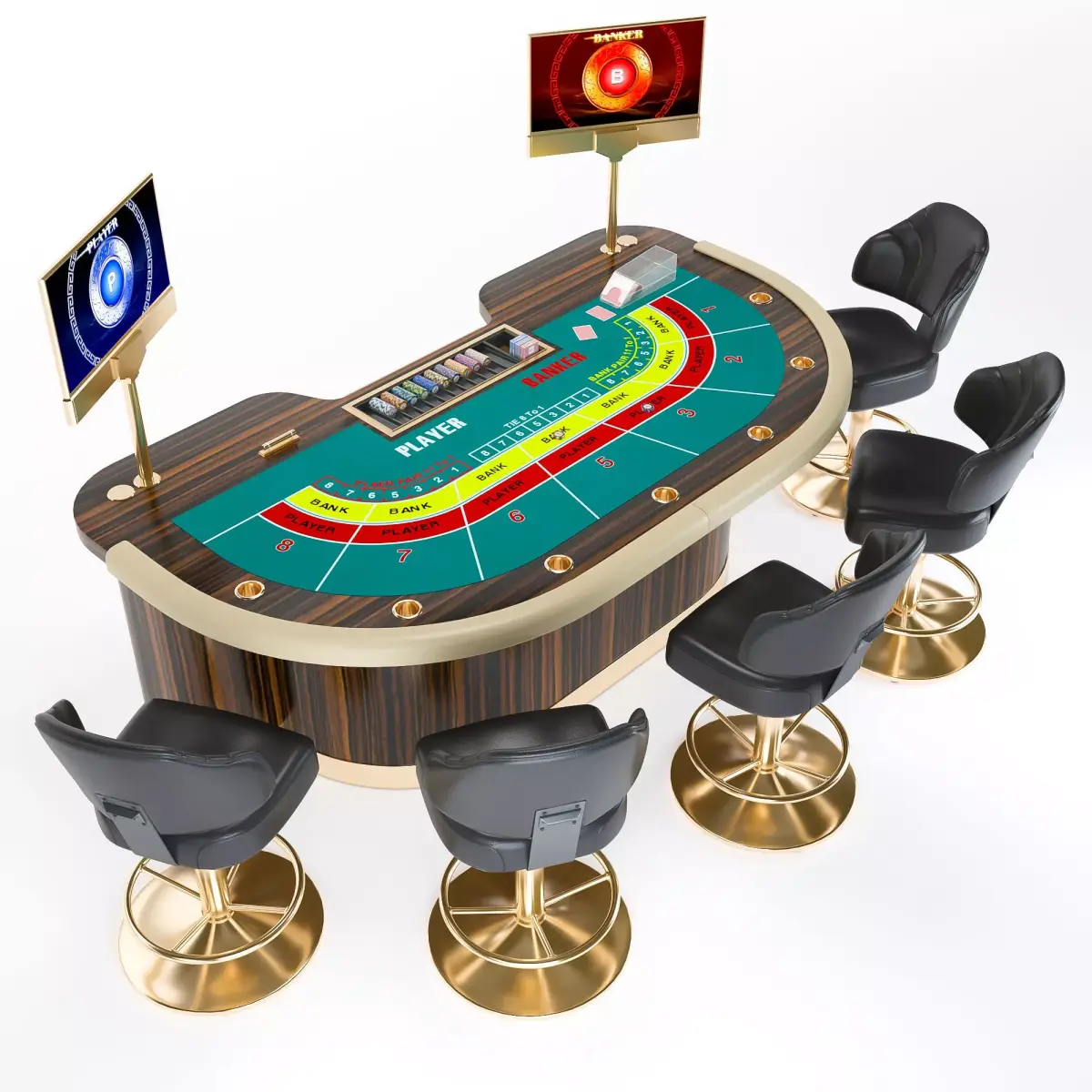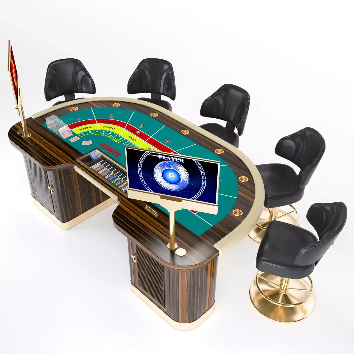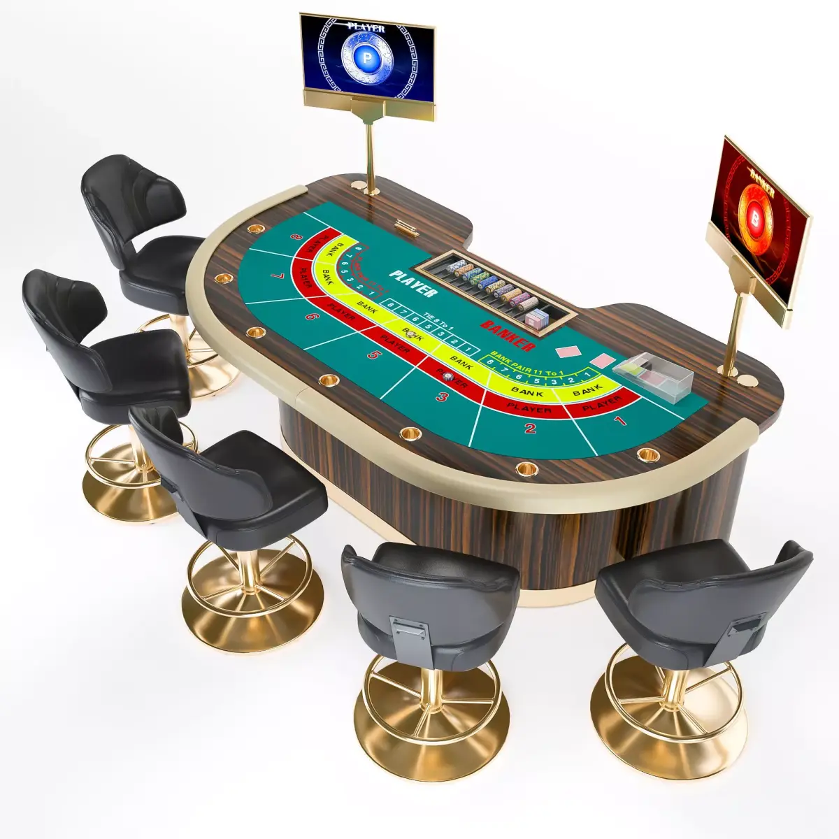 Ultra-thin dual-sided LED 27" screens displaying Player and Banker results.