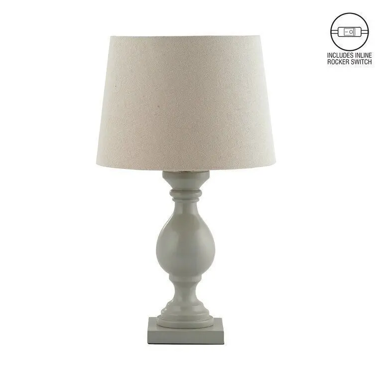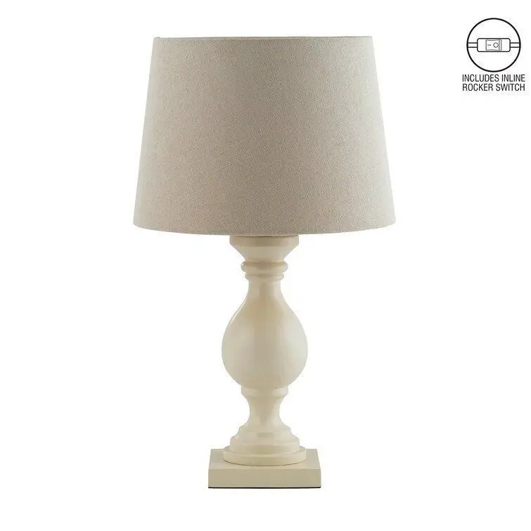 - This bright table lamp impresses you with its classic shape. The lampshade made of artificial linen gently dampens the light.