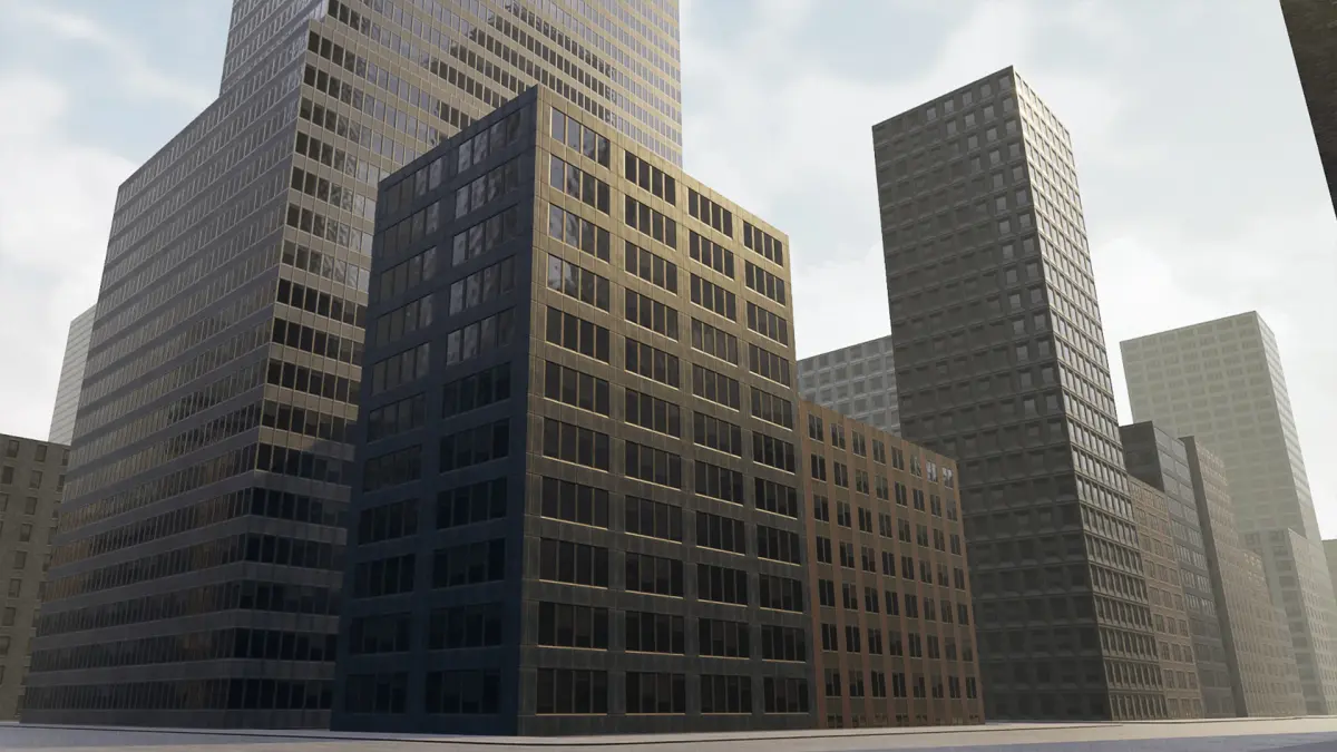 This is a package with low poly buildings. Very easy to customize the materials and the dimensions of each building. There are good, especially for backgrounds, mobile games platforms, VR etc.