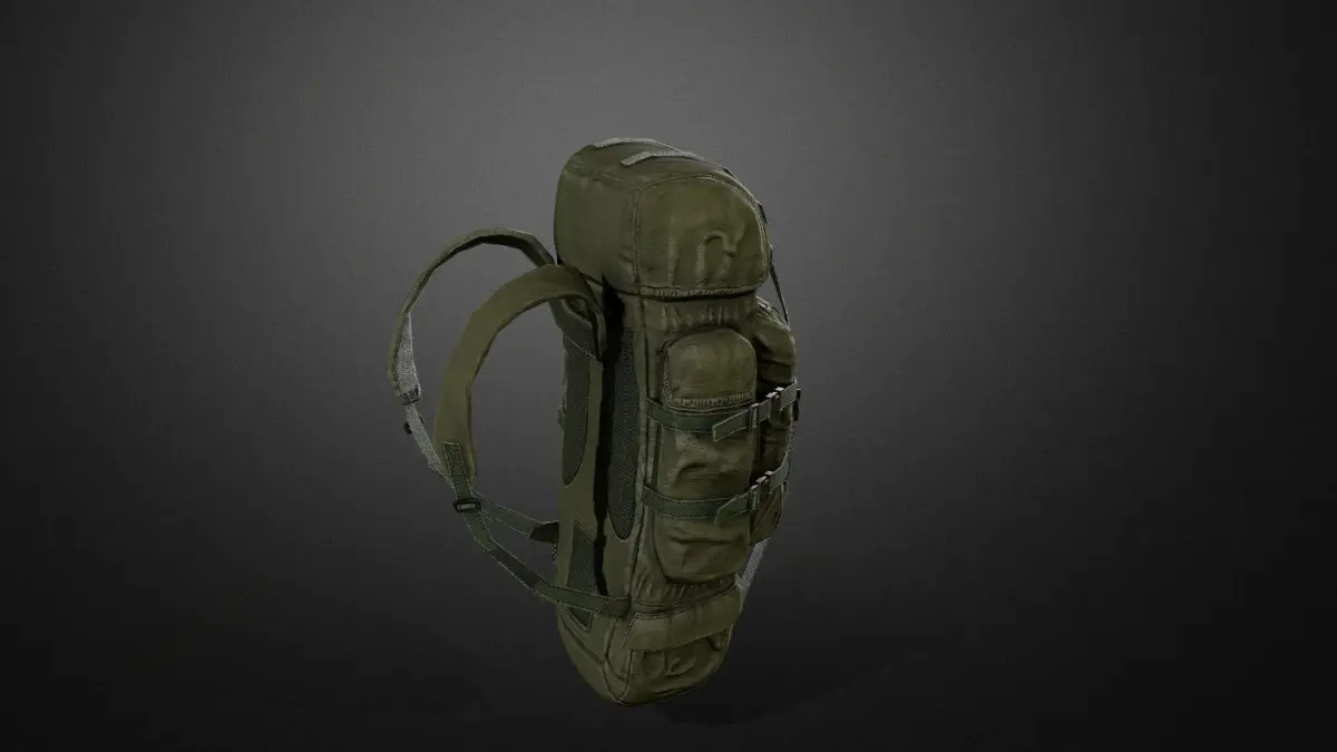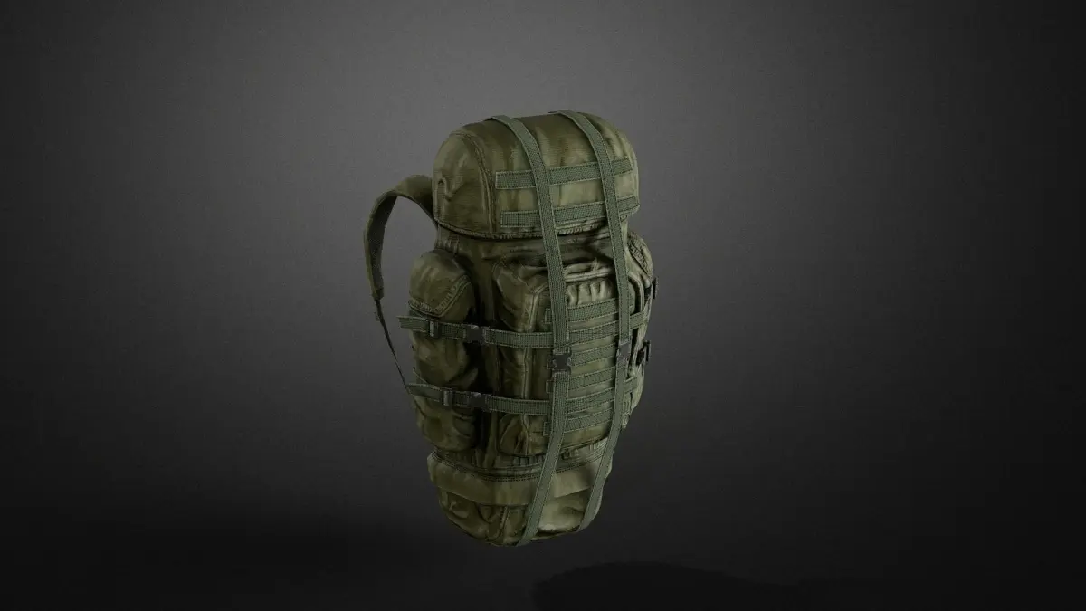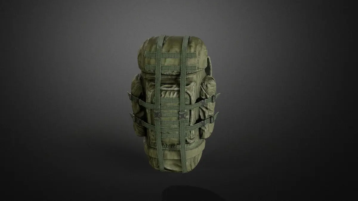 Big military backpack low-poly 3d model ready for Virtual Reality (VR), Augmented Reality (AR), games and other real-time apps.