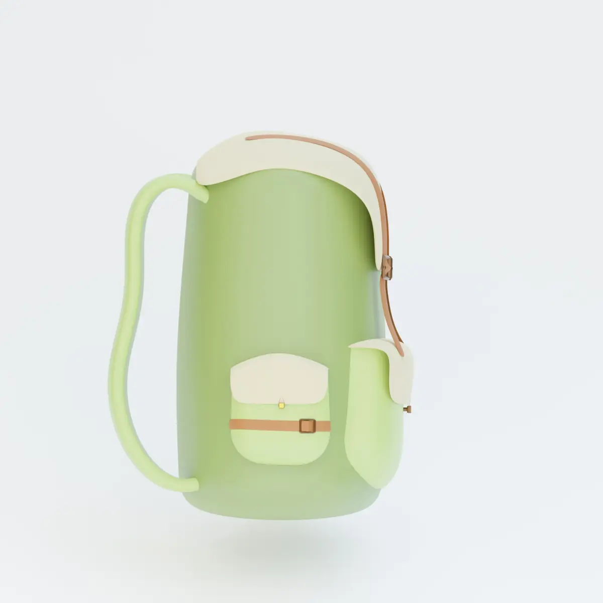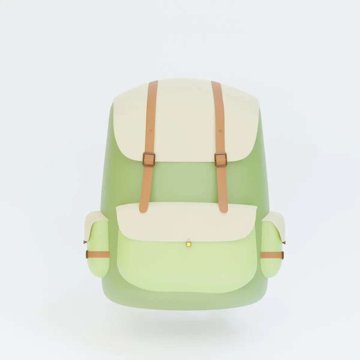This 3D backpack model boasts a clean, modern design with a soft green and cream color palette, accented by brown straps and subtle details. Its functional shape and compact style make it ideal for use in lifestyle visualizations, outdoor-themed renders, or casual design scenes. Simple yet elegant, this model is lightweight, versatile, and perfect for various 3D creative projects. Colors can be easily changed.