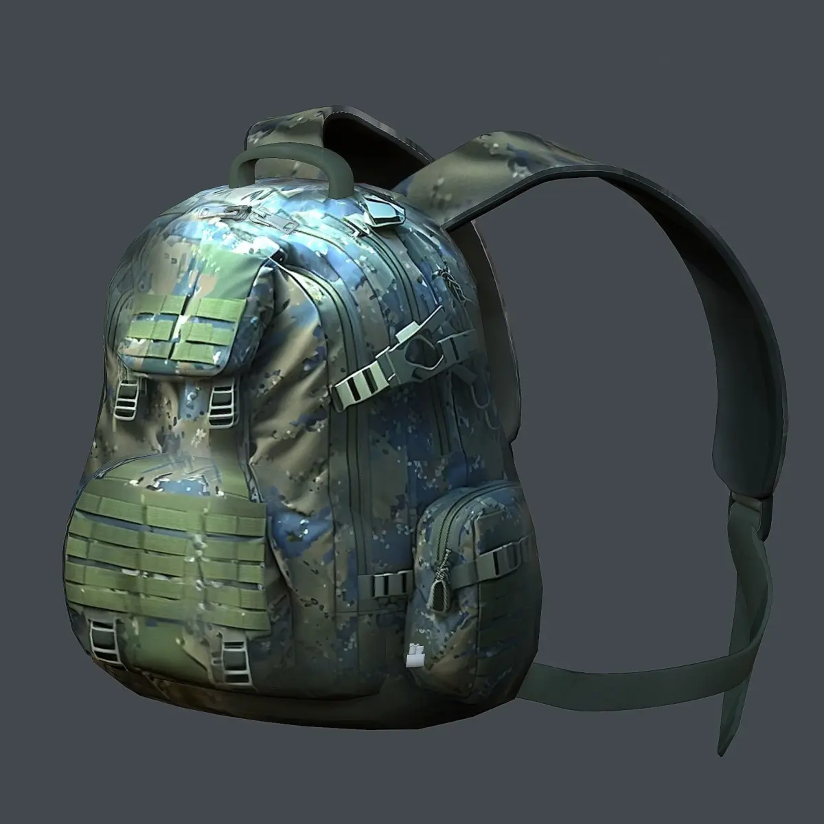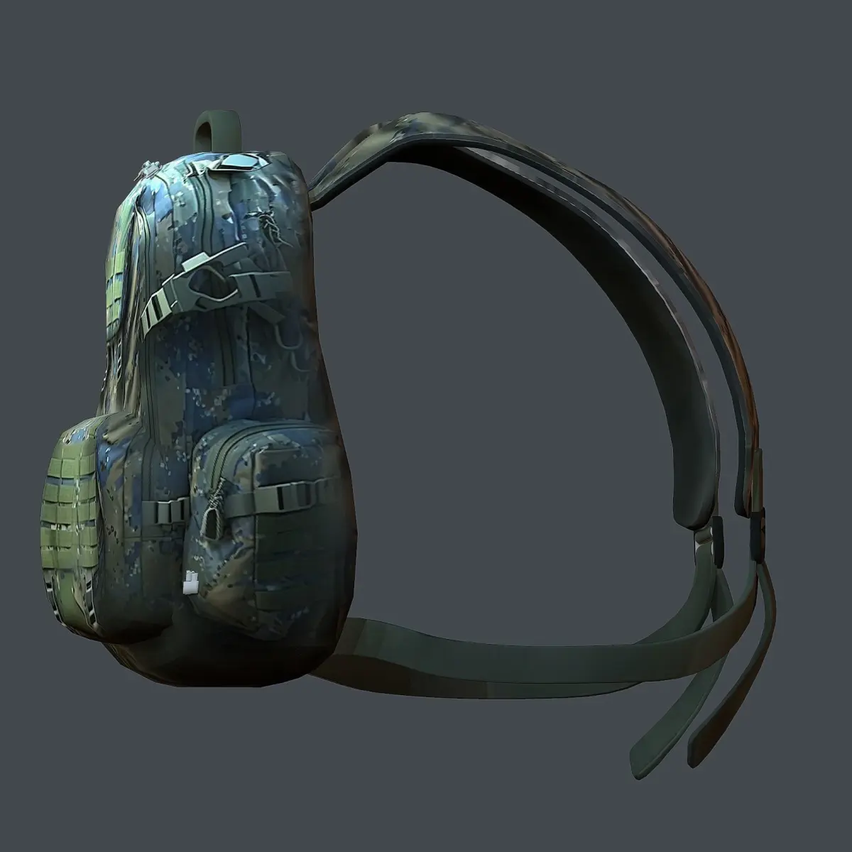 Backpack military combat Black baggage Low-poly 3D model Low-poly 3D model