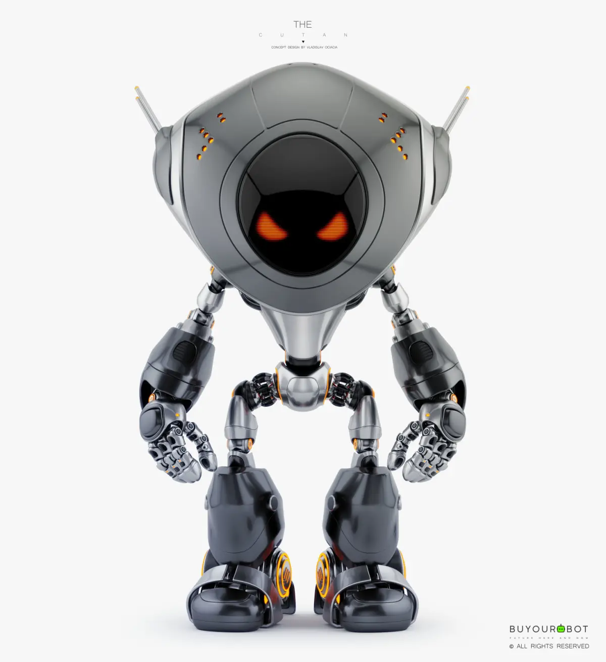 Bad robot with red angry digital eyes