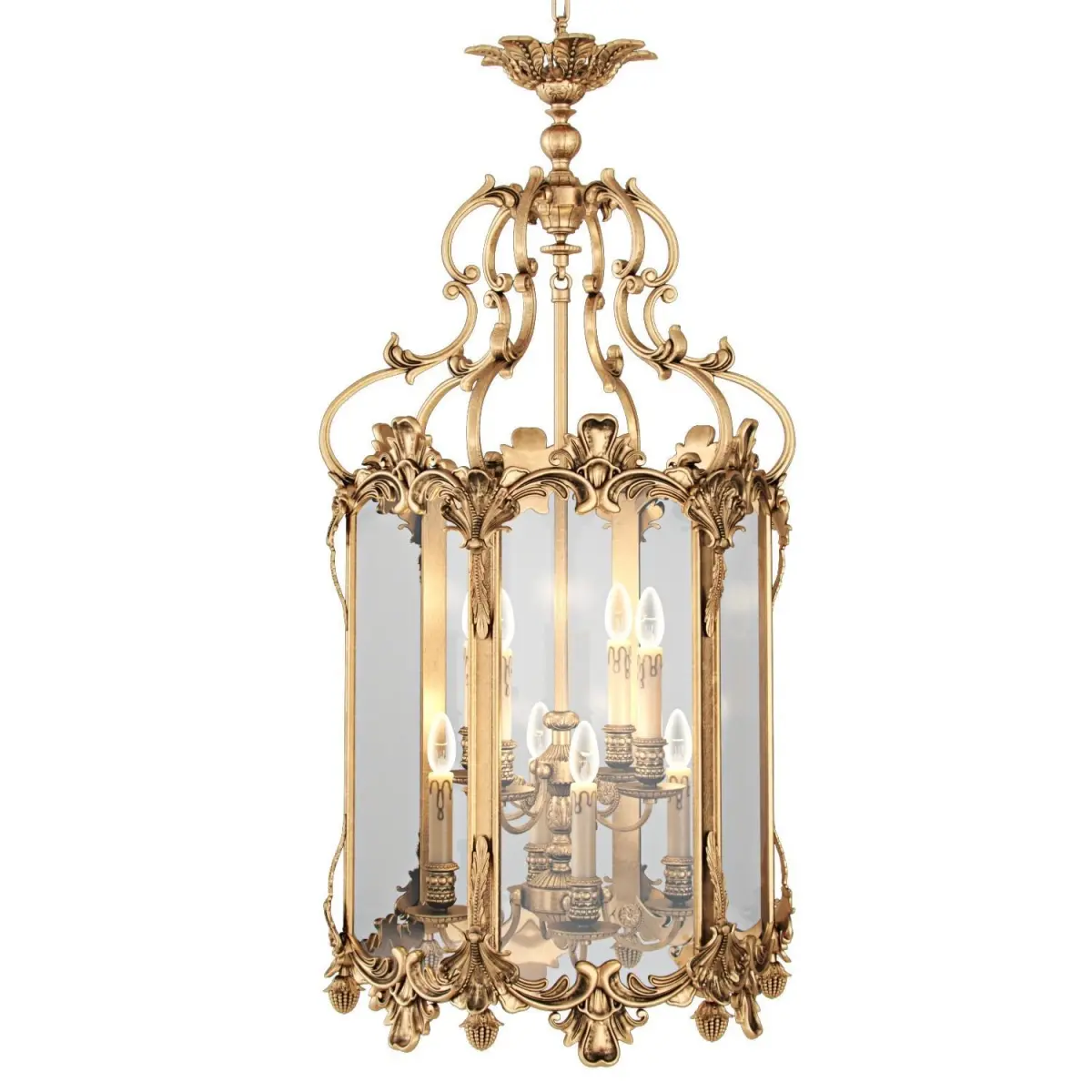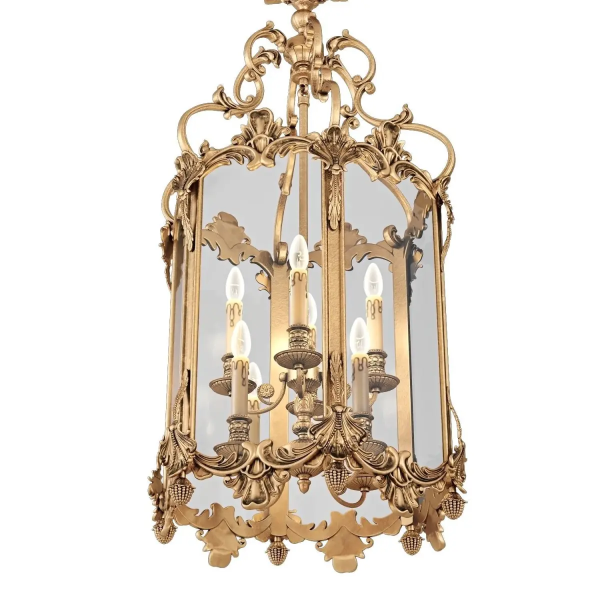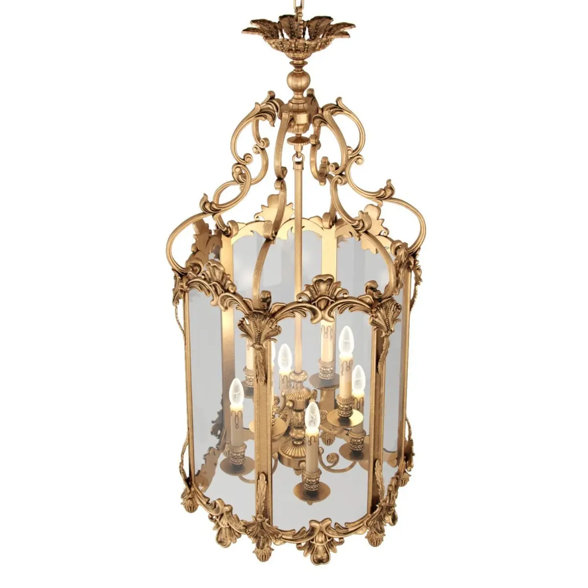 A wonderful 9 light lantern crafted by master artisans. It has a brass oxide frame and nine candle bulb holders encased in glass. A fabulous addition to any room. In the true Italian tradition, it's extremely generously proportioned.