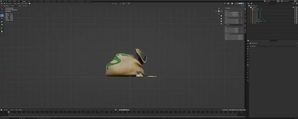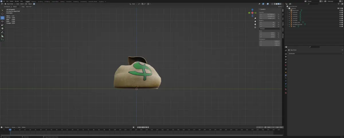 This is a bag of gold coins tested in Second Life as a low poly model and only a single land impact when all pieces are joined prior to bringing into Second Life. As is, each piece can easily be rearranged.