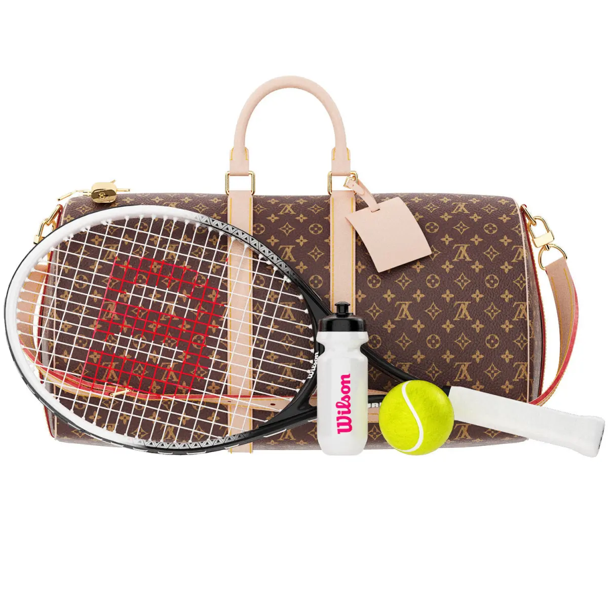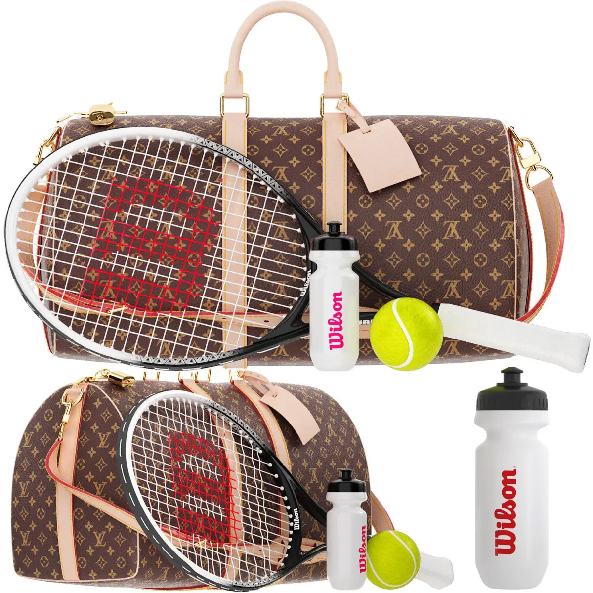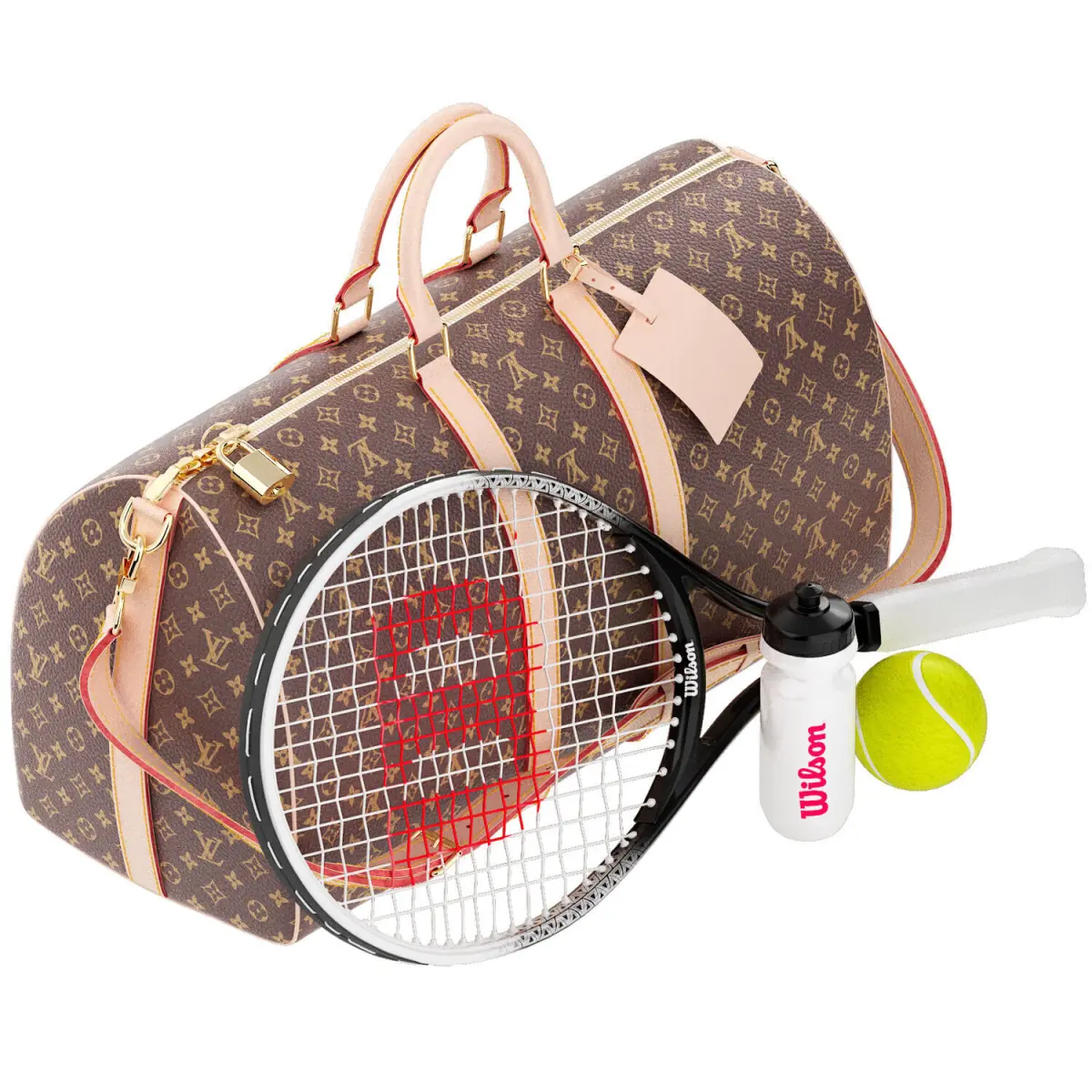 Tennis, Racket, Sports, wilson , Ball,baghand, luggage, bag, Fashion, Equipment, Accessory, keepall, monogram, clothing, Tennis Racket, Luxury Tennis, Tennis Set, Designer Sports, Tennis Bag, Sports Equipment, High Poly Model, 3D Model, Game Asset, Realistic Tennis, VR Ready,Fashion Accessory, Rackets & Balls, Branded Sports Gear, Luxury Brand, monogram, keepall, equipment,