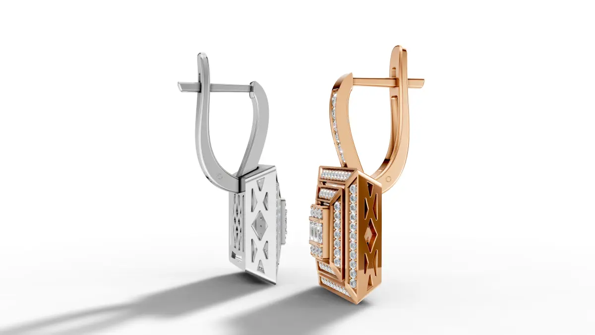 Introducing an exquisite geometric diamond earring available as3D model for yourarchitectural pyramid structure with a blend of rose gold and white gold (or platinum) settings, encrusted with brilliant-cut diamonds for a luxurious appeal. Key Features: High-poly, detailed and optimized 3D model Designed with real-world jewelry standards for accurate production Includes diamond and metal materials with realistic textures Clean geometry for easy modifications Suitable for 3D printing, rendering, and animation
