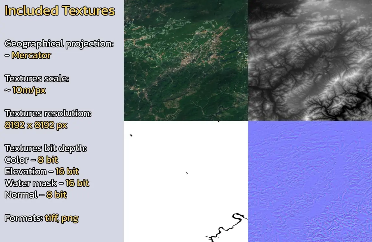 - Textures resolution: ~10m/px