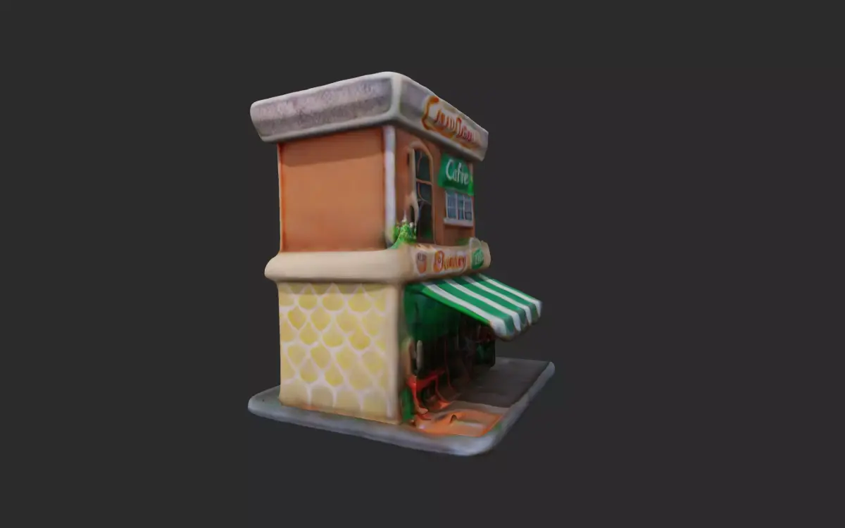 Charming low poly bakery coffe with stylized details. Great for cozy town scenes, mobile games, and stylized simulations, optimized.