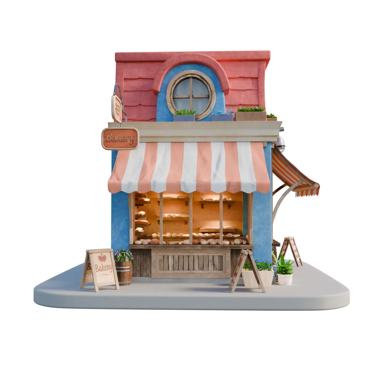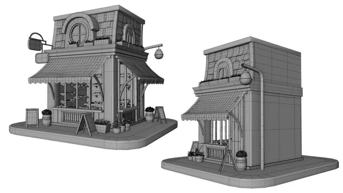 A stylized 3D cafe cartoon house model, ready for use in game development, animation, visualization, and VR/AR projects.Features: