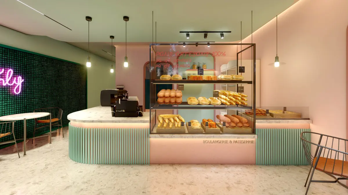 Bakery Interior: The model include only the building + basic interior furniture . Please review the attached picture from Sketchup. *Exported model by materials, very easy to change them. Only 3D model (textures are not included) If have any problems with the model, please do not hesitate to contact me.