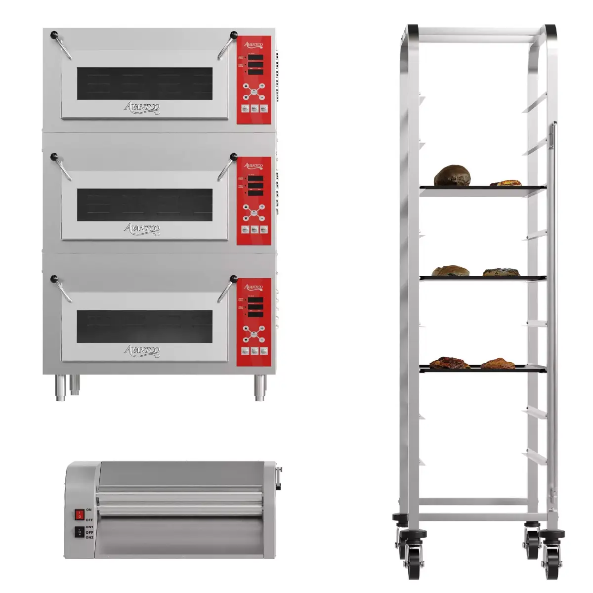Bakery Set 2Avantco DPO-3SA Triple Deck CountertopElectric Dough SheeterBreadsDeskBakery RackFbx,objCorona and Vrayblender cycles