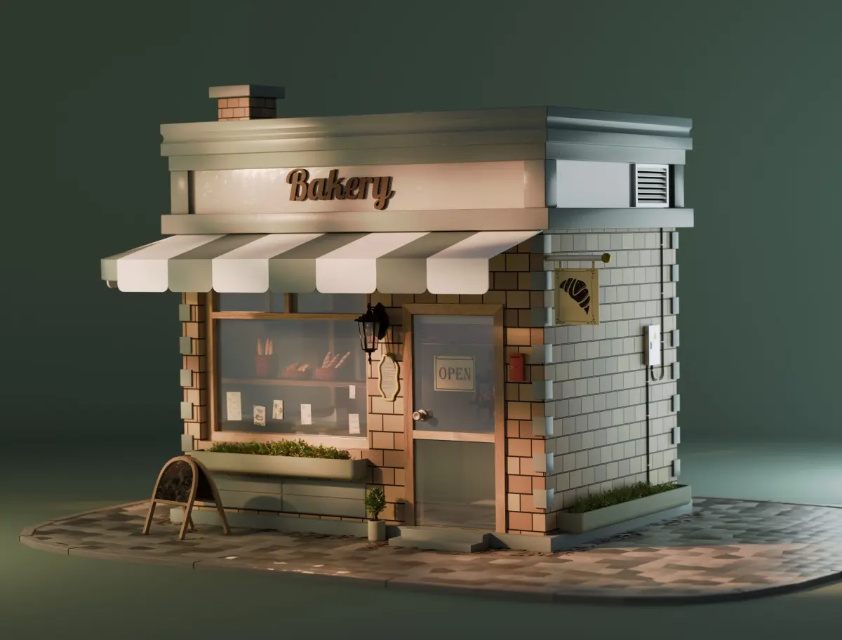 Architectural VisualizationAnimated Commercials or FilmsDiorama ProjectsBakery or Cafe Branding VisualizationThis bakery storefront is designed for creators looking to add a cozy, realistic touch to their projects. Whether you’re designing a small-town street scene or enhancing your portfolio, this versatile model is an excellent choice.