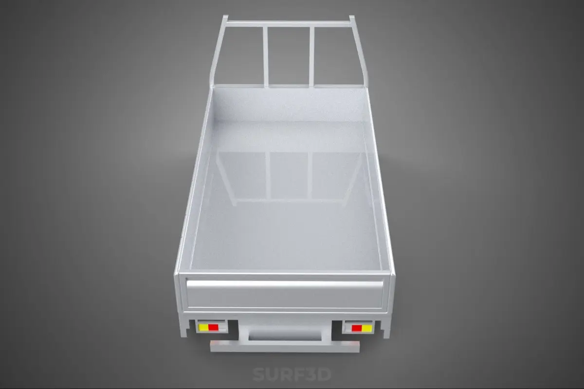 The core component is a robust, flat, and open cargo deck, typically fabricated from durable materials such as steel (mild steel, high-tensile steel, or galvanized steel for corrosion resistance), aluminum alloys, or a combination thereof. Aluminum is favored for its strength-to-weight ratio, contributing to better fuel efficiency and increased payload capacity, while steel offers superior strength for heavy-duty applications. The deck itself is supported by a sturdy subframe, which is engineered to securely bolt directly onto the vehicle's longitudinal chassis rails. The surface of the deck may be smooth, textured (e.g., chequer plate), or incorporate integrated tie-down points to secure cargo.