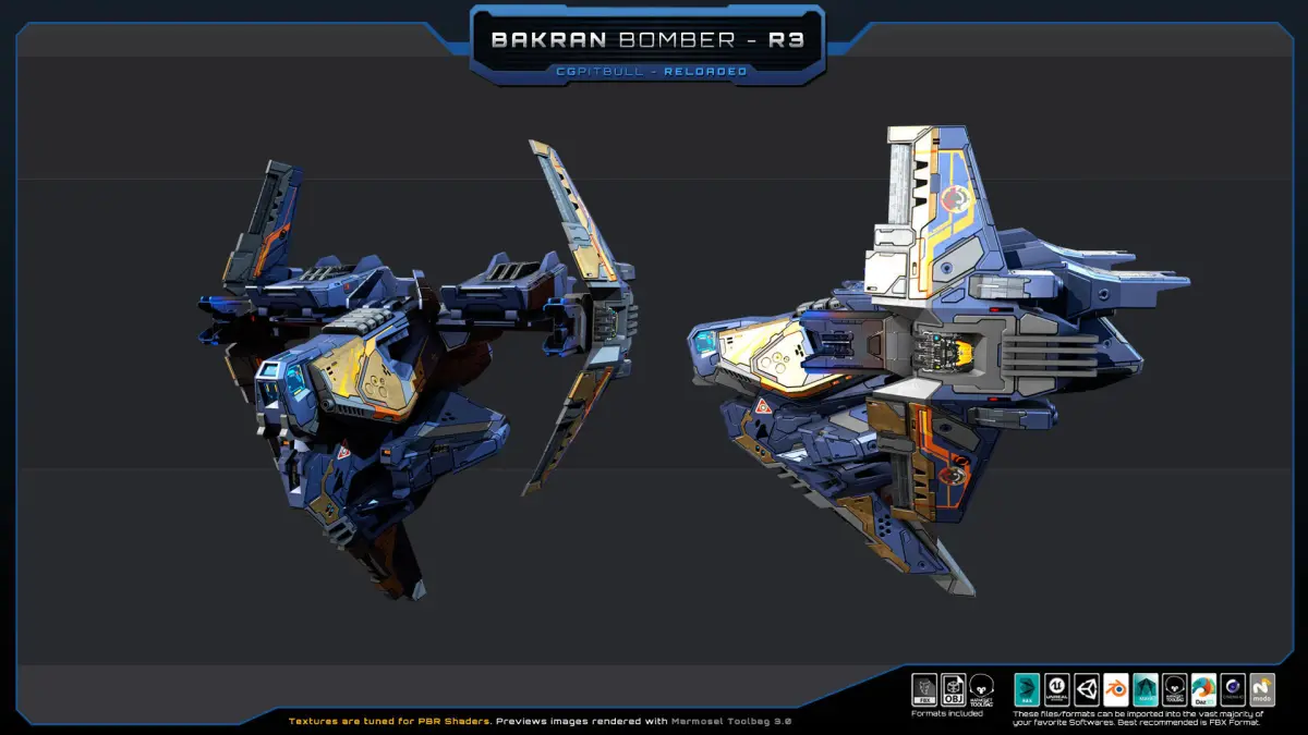 Previous model with reworked textures BAKRAN Bomber R3 reloaded, now textures are PBR compatible, new color schemes, new Photoshop file, color mask, new files. Check previews for details.