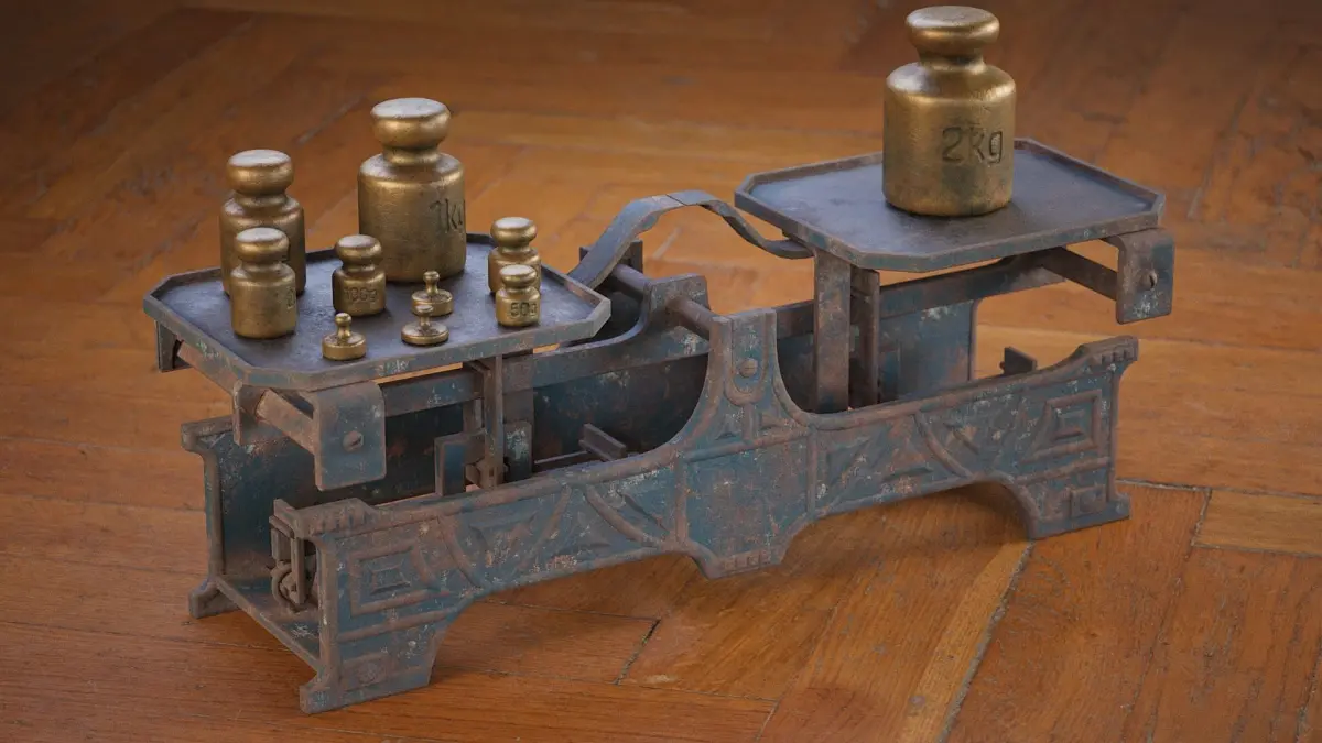 Digital 3D model of old rusty balance scale with brass weights. The model comes in 3 static poses - balanced, half lifted and full lifted. This model is also available in rigged version, which you can find at my store. Notice that this purchase does NOT include rigged version! This purchase includes bonus textures for green scale model (not pictured in previews).