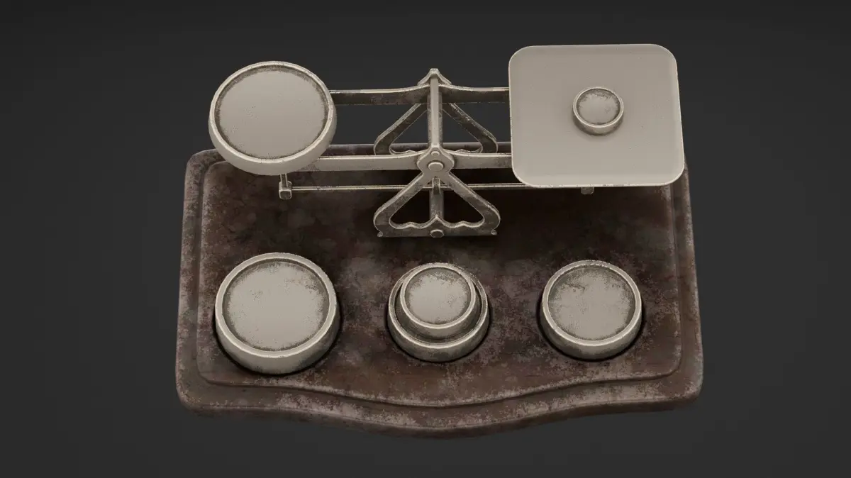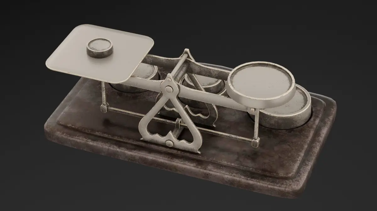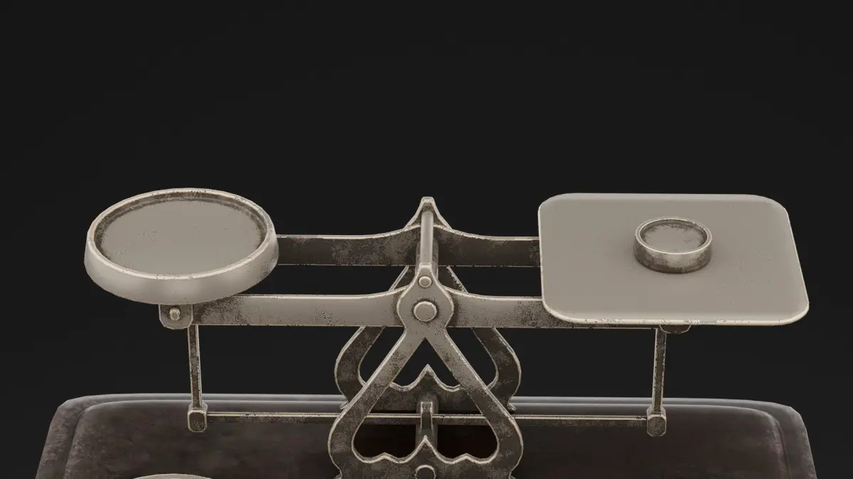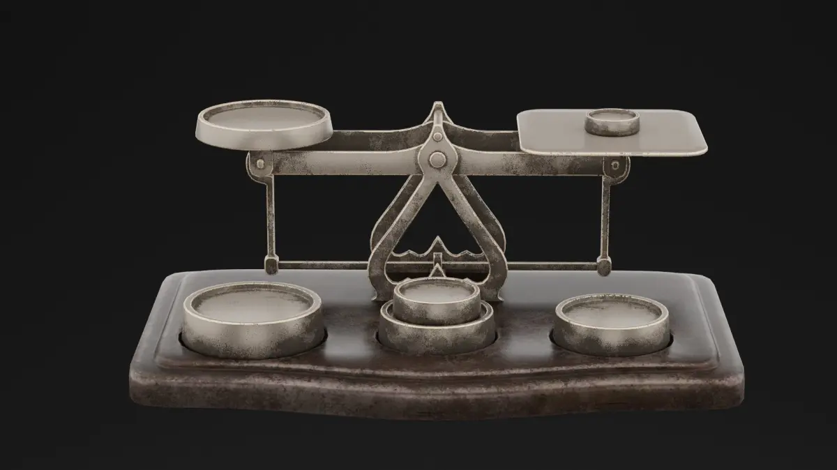 This 3D model showcases a classic balancing scale, meticulously designed with fine details, featuring two symmetrical pans suspended from a central beam. The scale has a polished metallic finish, with realistic textures and intricate engravings, adding a sense of authenticity and sophistication. Available in BLEND, OBJ, and DUF formats, this model is ideal for use in legal-themed visuals, educational materials, or decorative 3D scenes. Its photorealistic design and precise detailing make it a standout addition to any project requiring a symbol of balance and justice.