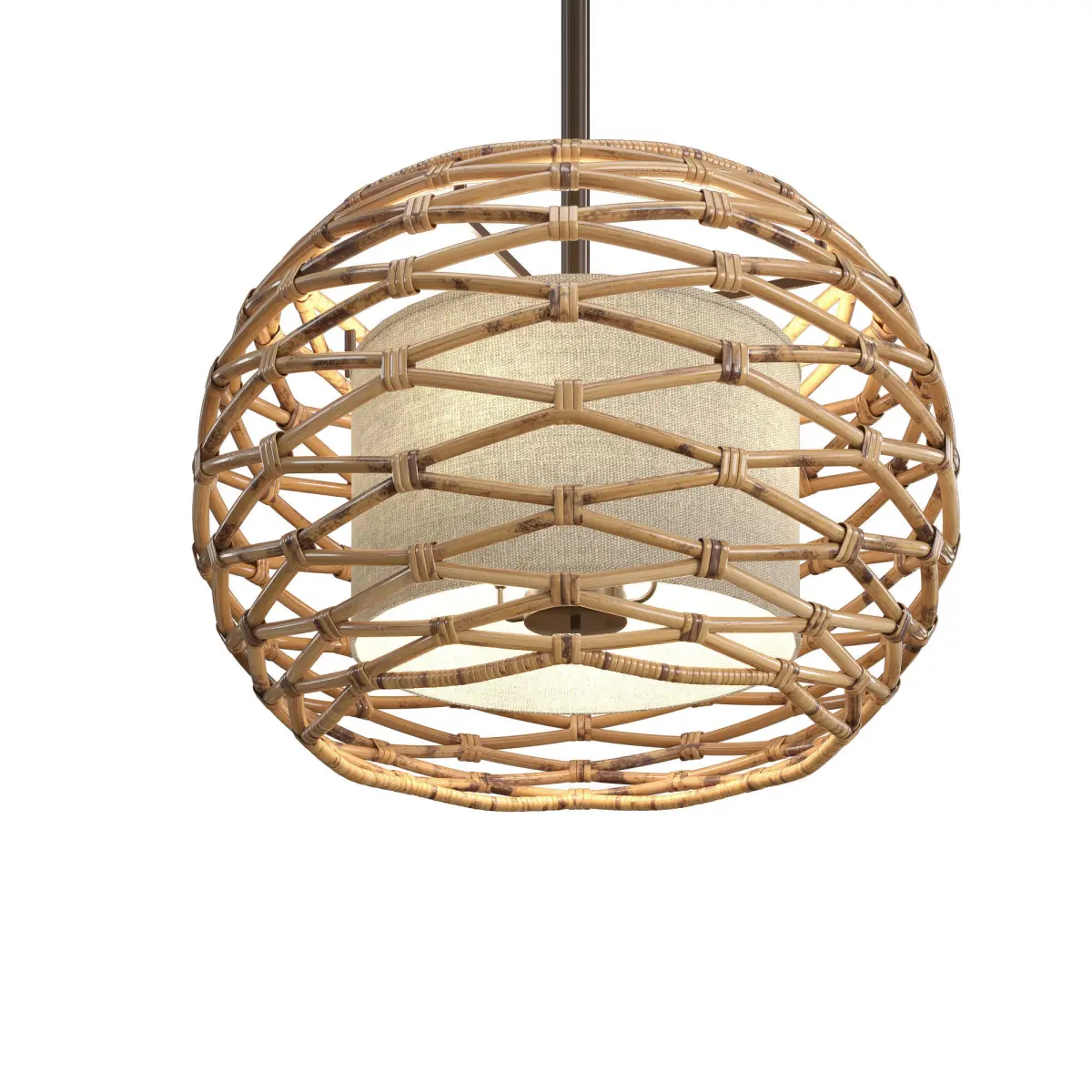 Width/Diameter 28.00Height 17.50Min - Max Height 24.25- 66.25Backplate/Canopy/Base 8.00"Shade Material RattanShade Color NaturalNumber of Lamps 6Wattage 60w ea.Socket Type E12 Candelabra BasePlug In NoAVAILABLE FINISHESTEXTURED BRONZEComprised of three layers—inner candelabra body, middle fabric shade, and outer woven form—Balboa uses sustainably harvested rattan in a wave pattern, infusing any space with alluring natural textures and decorative motifs.