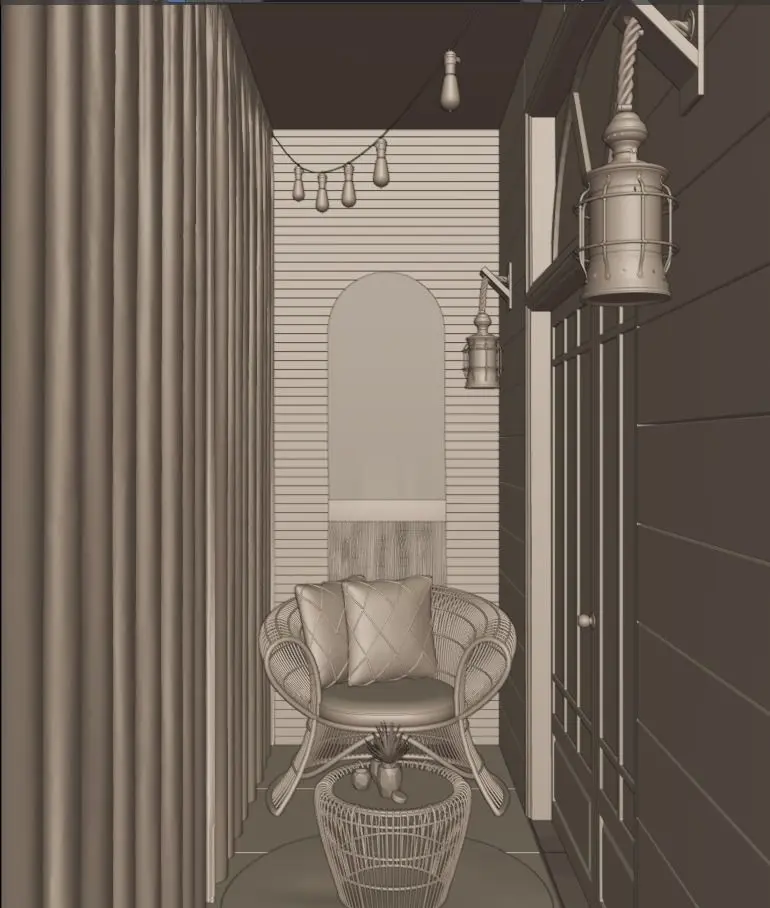 Balcony interior 3D model made in blender 3.4.0 Renderer:CyclesScandi and boho style