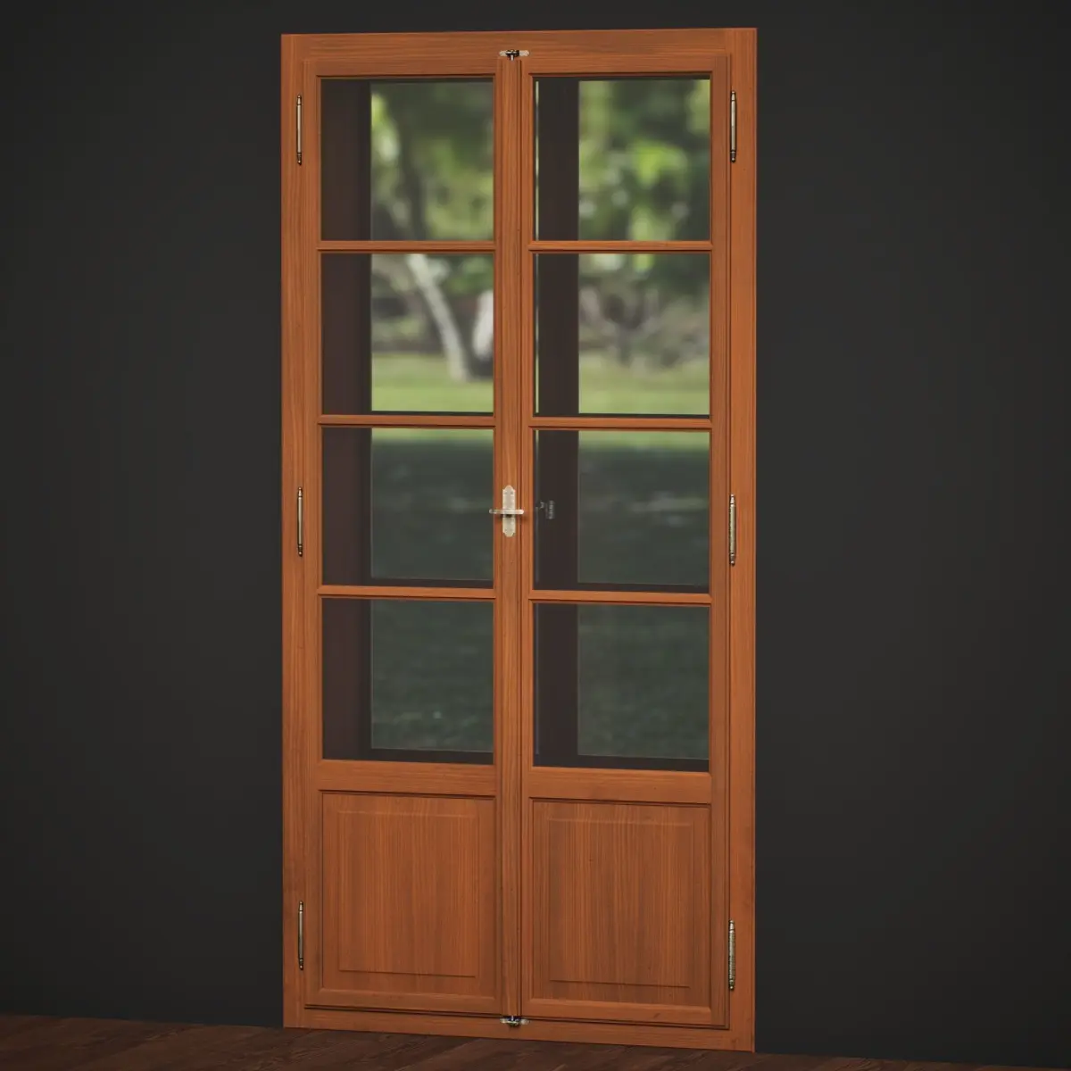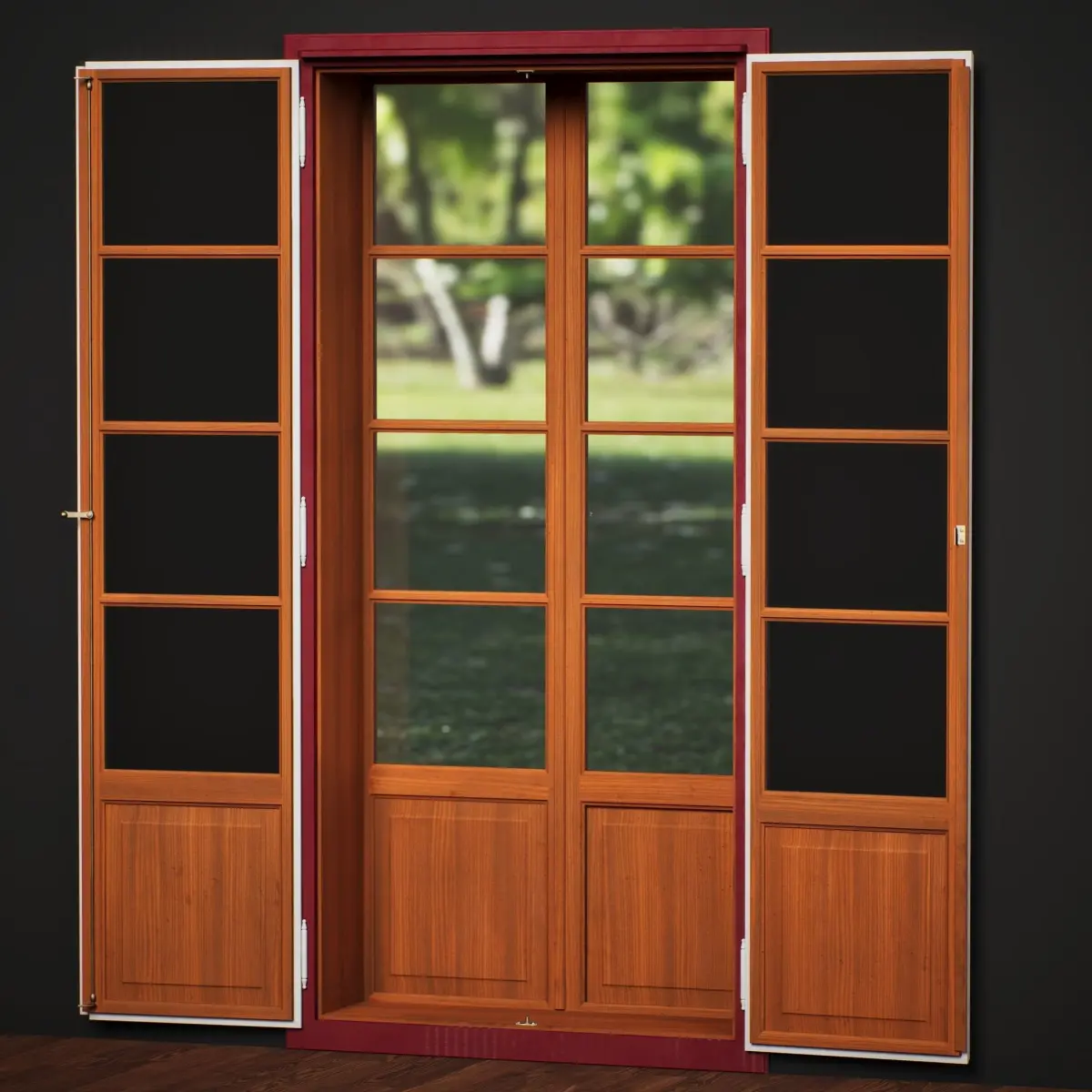 Balcony Door in Box Window Style - painted outer wings for more UV protection - bronze handles, hinges and closing mechanism - single glazing on the outer wings, double glazing on inner wings