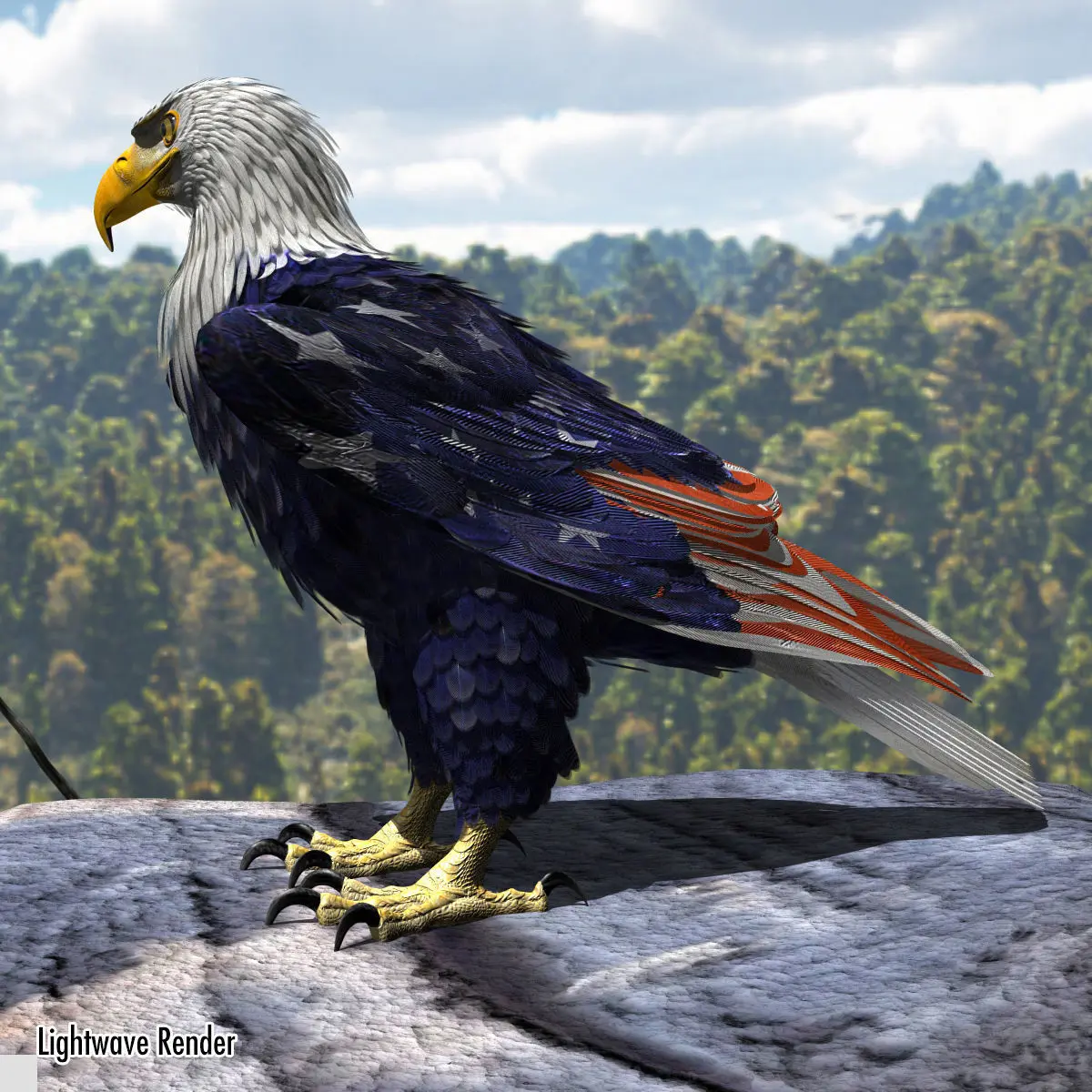 You can also make adjustments, like spreading the wing tip feathers and spreading the tail using morph targets.