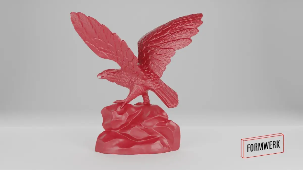 The detailed 3D model is based on a high-resolution scan of a hand-carved wooden eagle and was provided with additional details to make the figure look more lifelike.