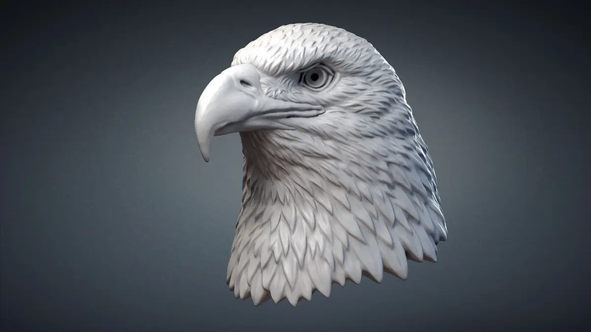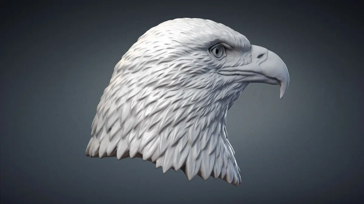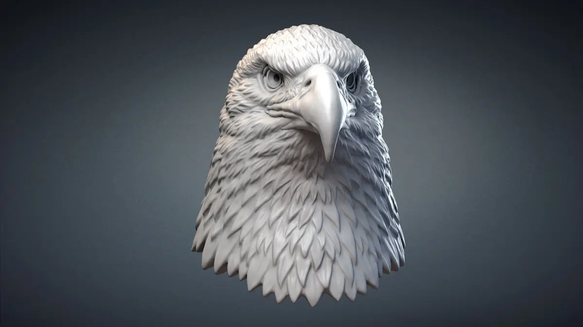American Bald Eagle bird head sculpture. 3D model for 3d printing, CNC carving.