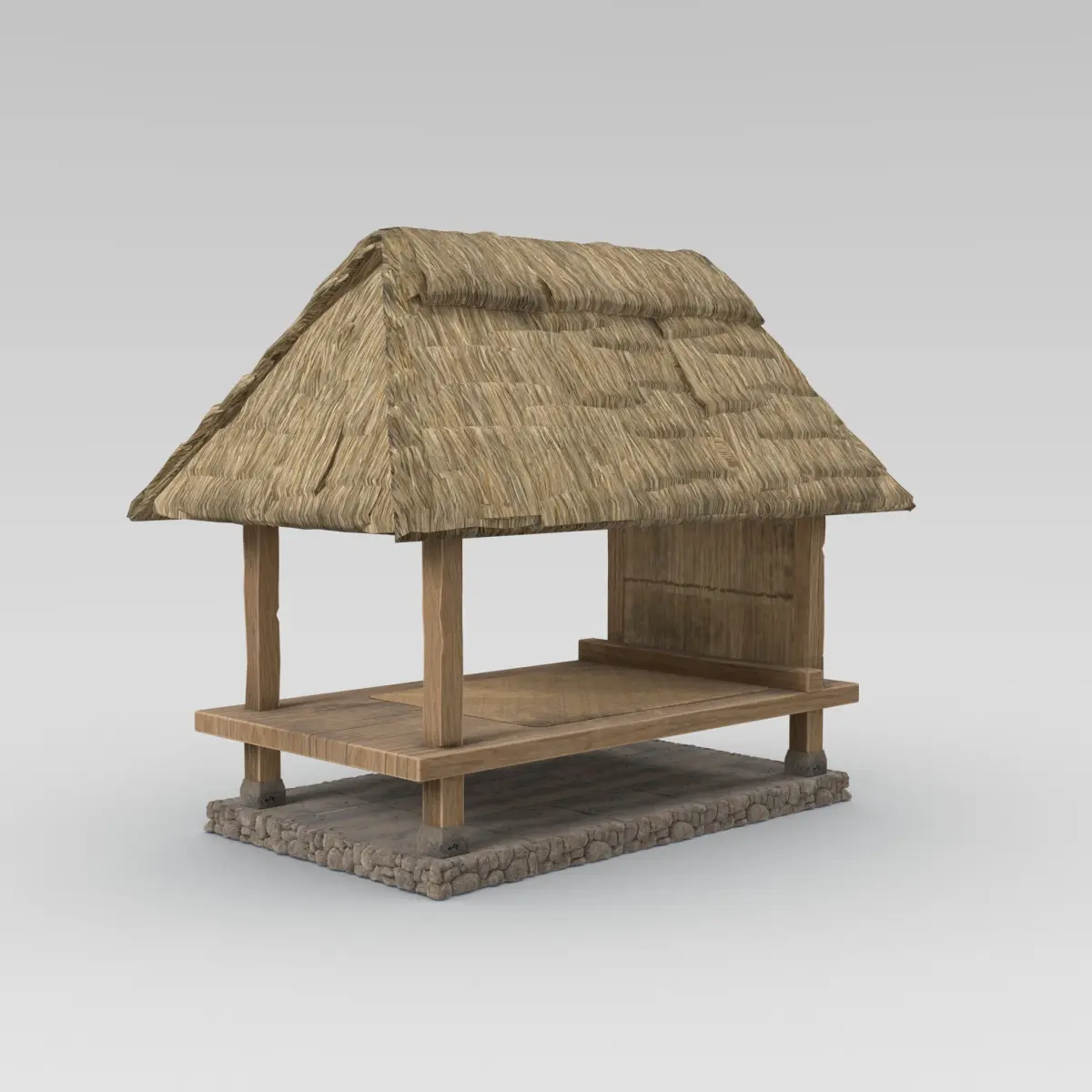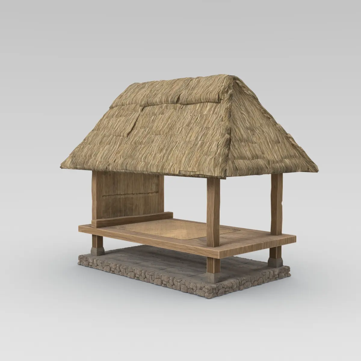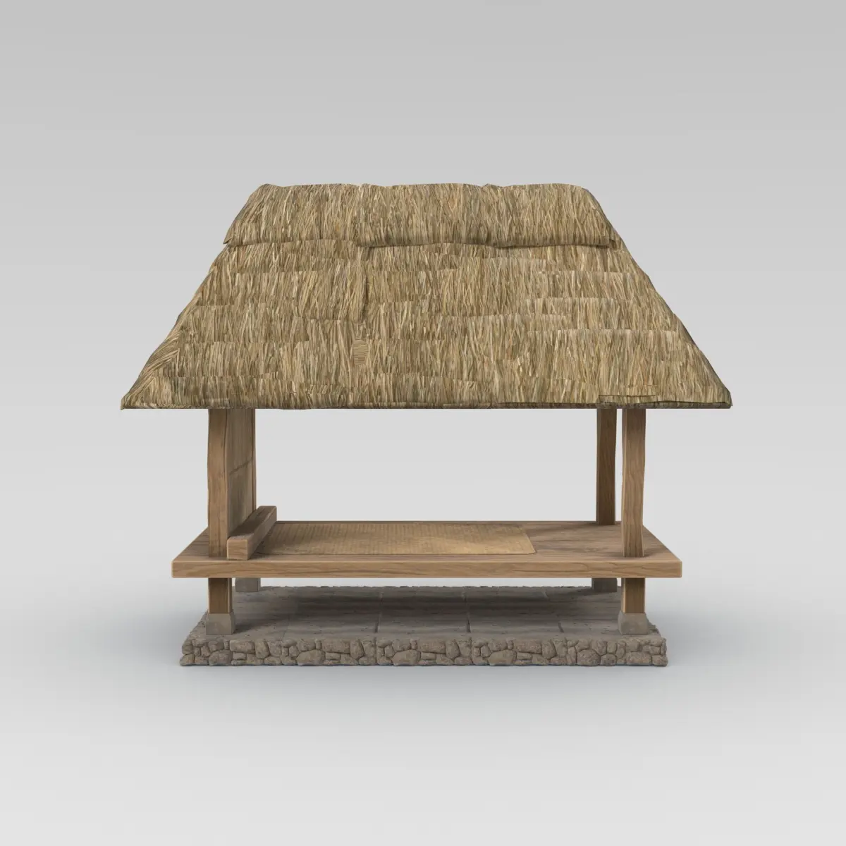 "A traditional open-air pavilion designed for rest and reflection. This version features a classic aged look, ideal for gardens, rice fields, or spiritual sanctuaries.