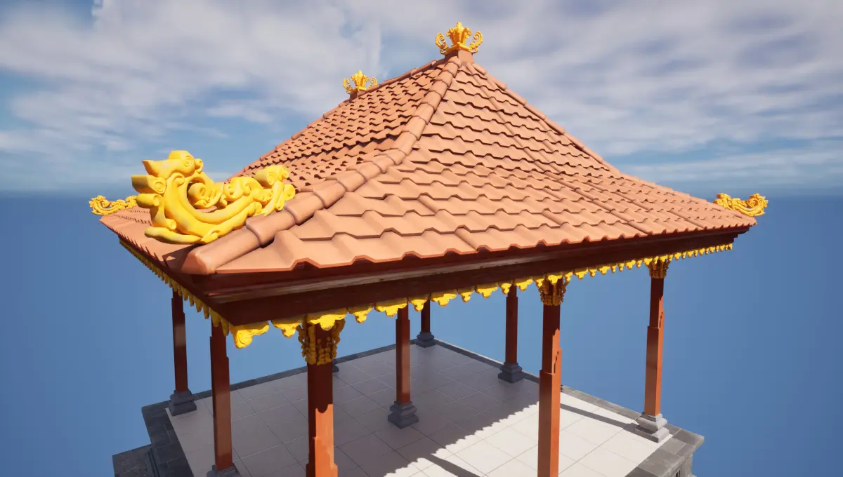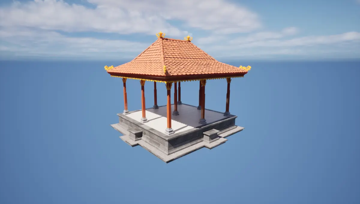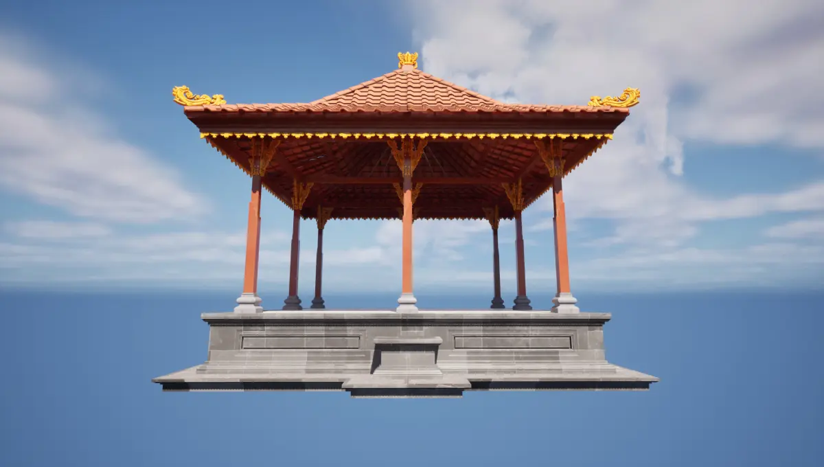 "Elevate your virtual spaces with the timeless elegance of a Balinese Bale Dangin pavilion. Often used for ceremonies and social gatherings, this open-air structure brings a sense of spiritual calm and cultural depth to any temple, garden, or heritage-inspired environment.