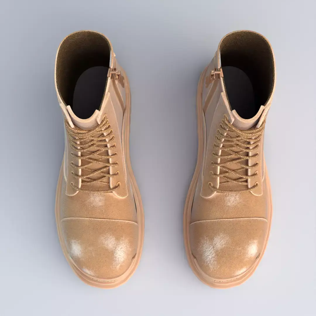 This model features a rugged combat-style silhouette with a thick lug sole, reinforced toe, lace-up front, and side zipper details. It is ideal for fashion visualization, product renders, cinematics, games, AR/VR, and high-end brand presentations.