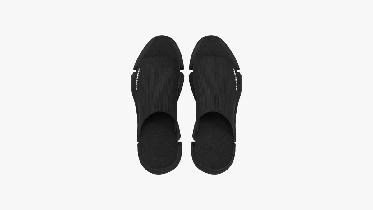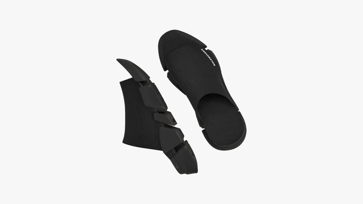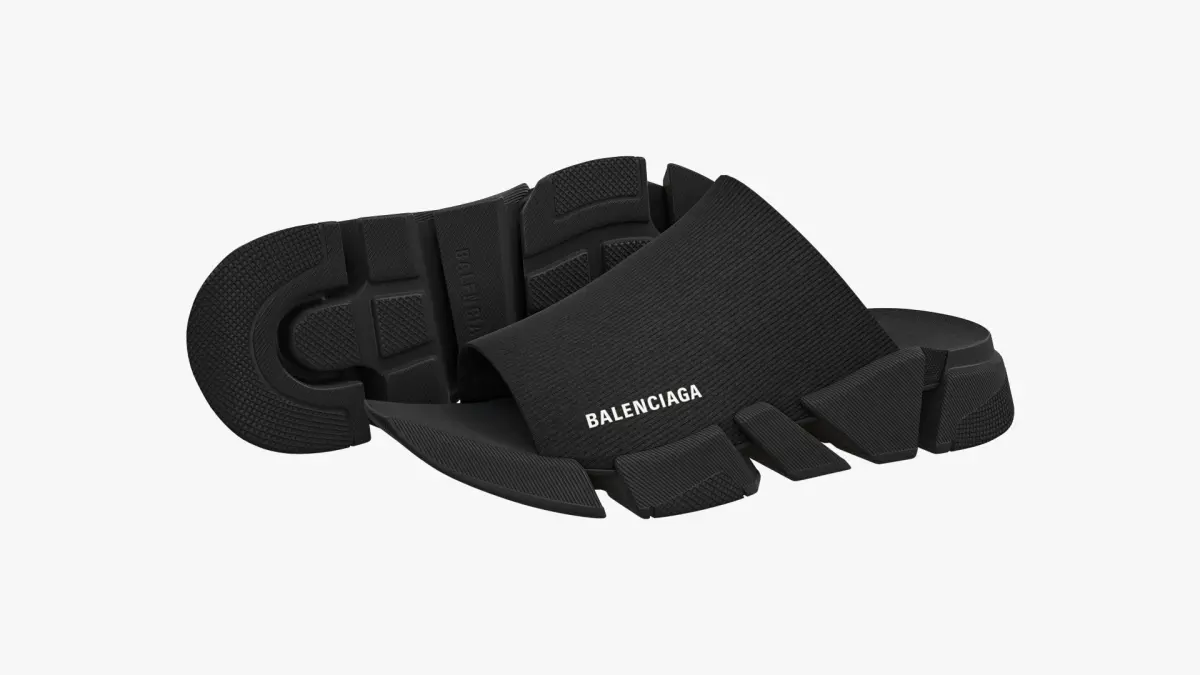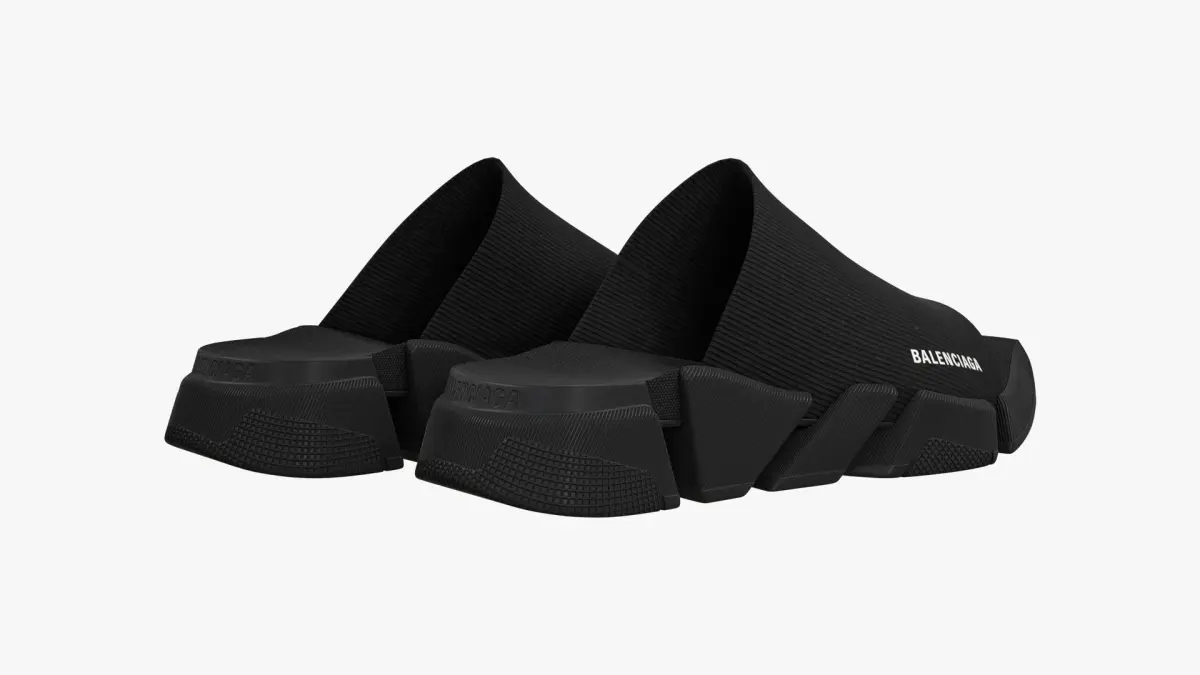 Detailed 3D model of a pair of black Balenciaga Speed 2.0 Slide Sandals, modeled in Cinema 4D and rendered with V-Ray 5. The model was created using approximate real world dimensions.