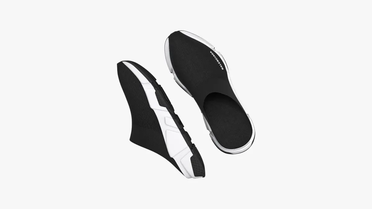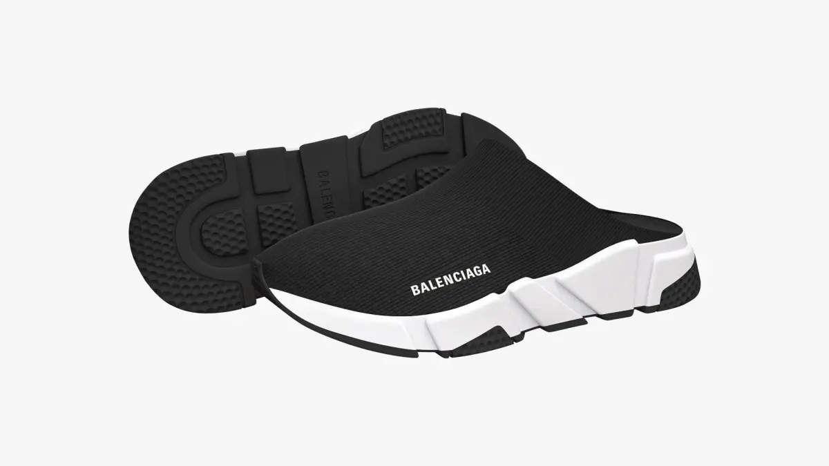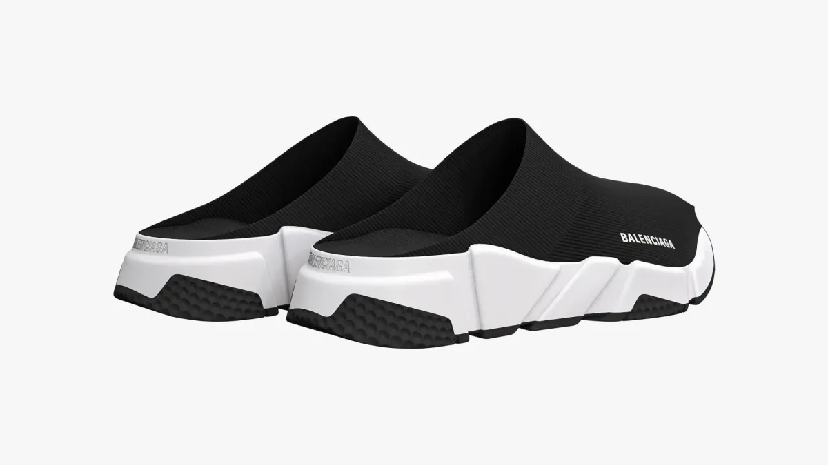 Detailed 3D model of a pair of black Balenciaga Speed Mules, modeled in Cinema 4D and rendered with V-Ray 5. The model was created using approximate real world dimensions.