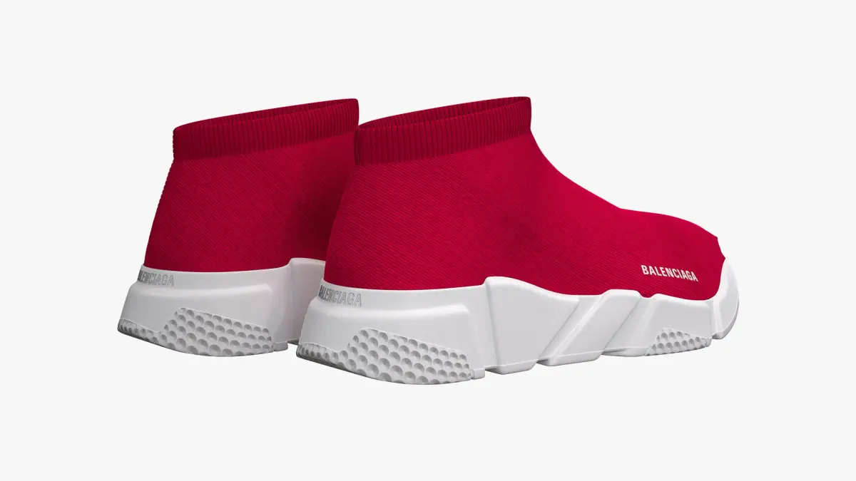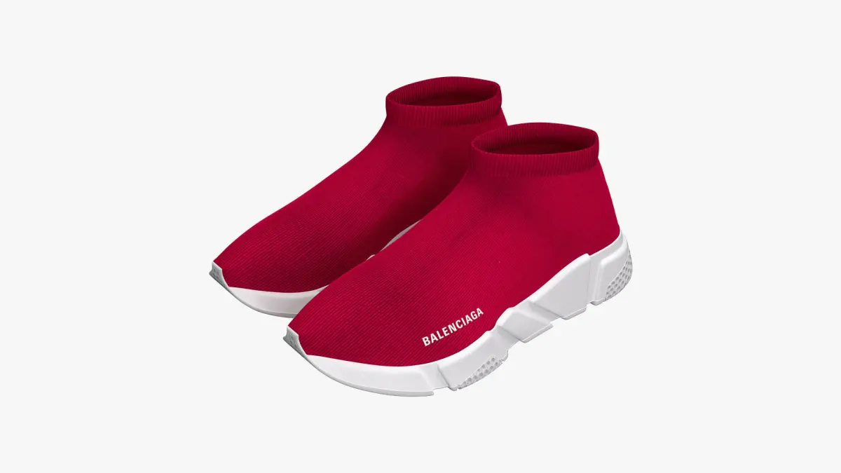 Detailed 3D model of a pair of Pink Balenciaga Speed Trainers Low, modeled in Cinema 4D and rendered with V-Ray 5. The model was created using approximate real world dimensions.
