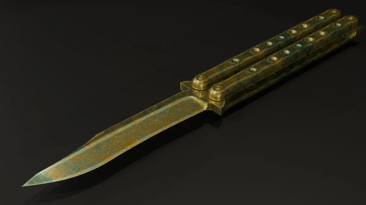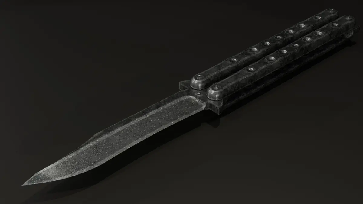 Balisong knife, a uncommon street knife, or collector's star. The model is relatively high polygonal, if necessary it is possible to make a 3D print. If necessary, make a different texture, or prepare for printing. The model itself consists of - a blade, two handles, washers, fasteners, pins on the blade, handle pins. I am a fan of blacksmithing, so the model has a solid texture, made of different metals.