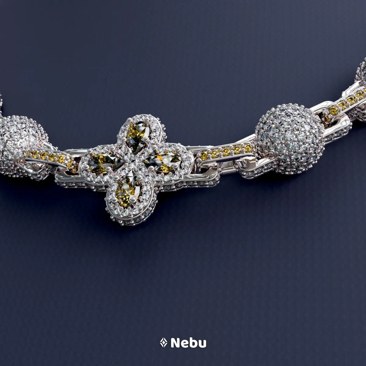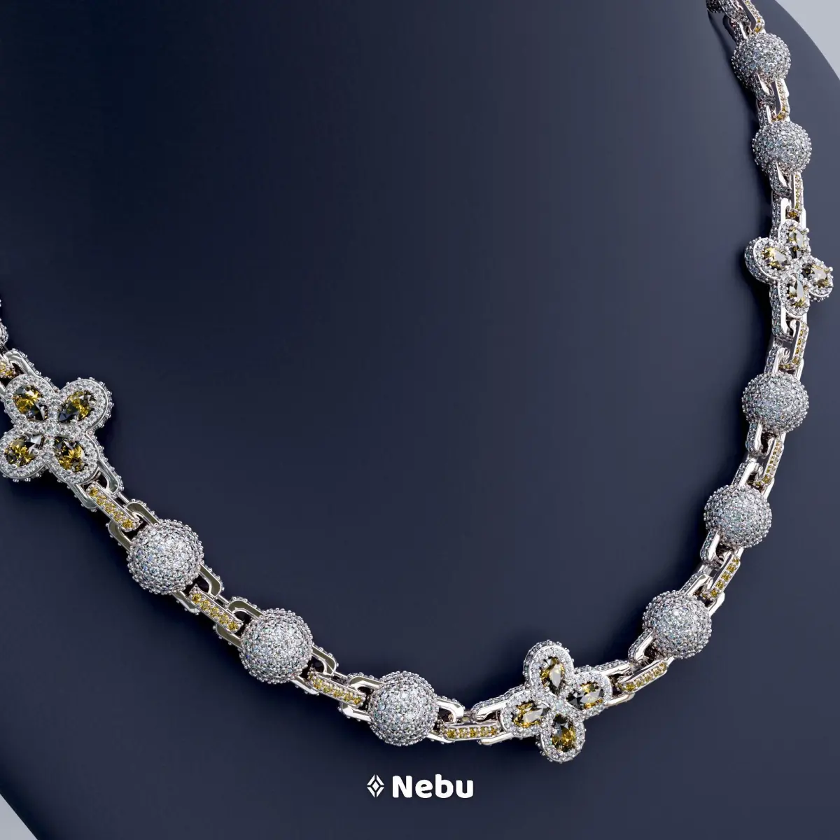 Hello everyone, I am offering this ball chain model with flower-shaped links and pear-cut gemstones.