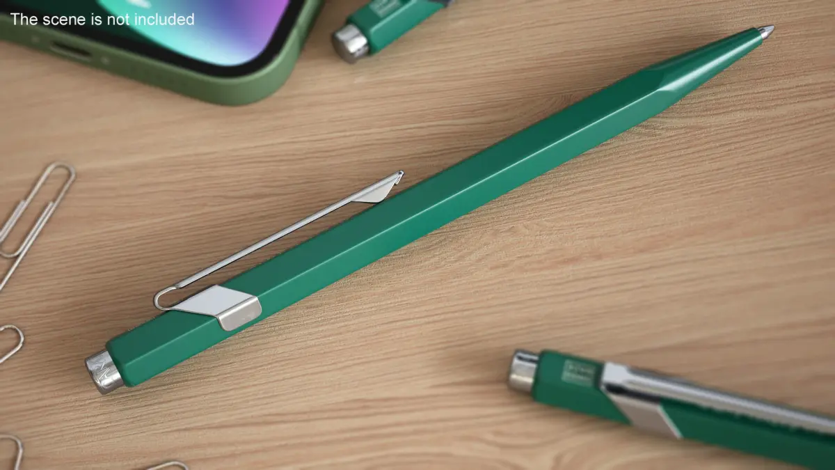 Ball Pen Rolex Caran dAche Silver Green is a 3d model of modern stylish ballpoint pen type writing tool.