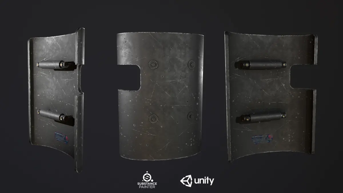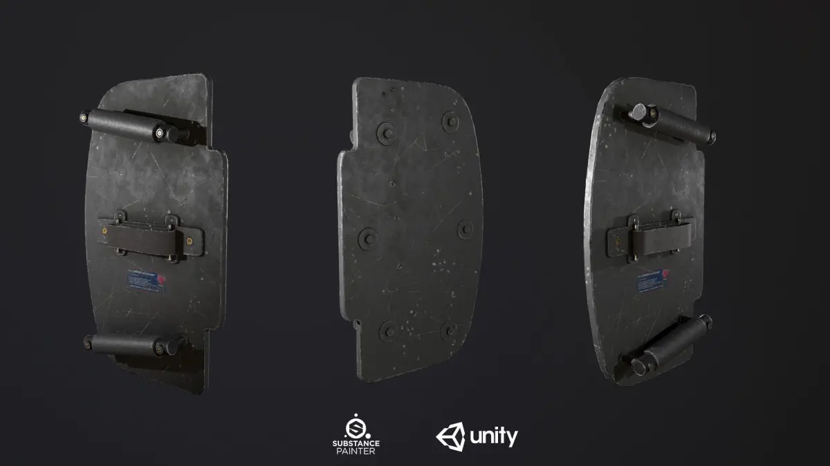 3D Model Ballistic Shield Pack textured in Substance Painter 2020 and rendered with Marmoset Toolbag 3.