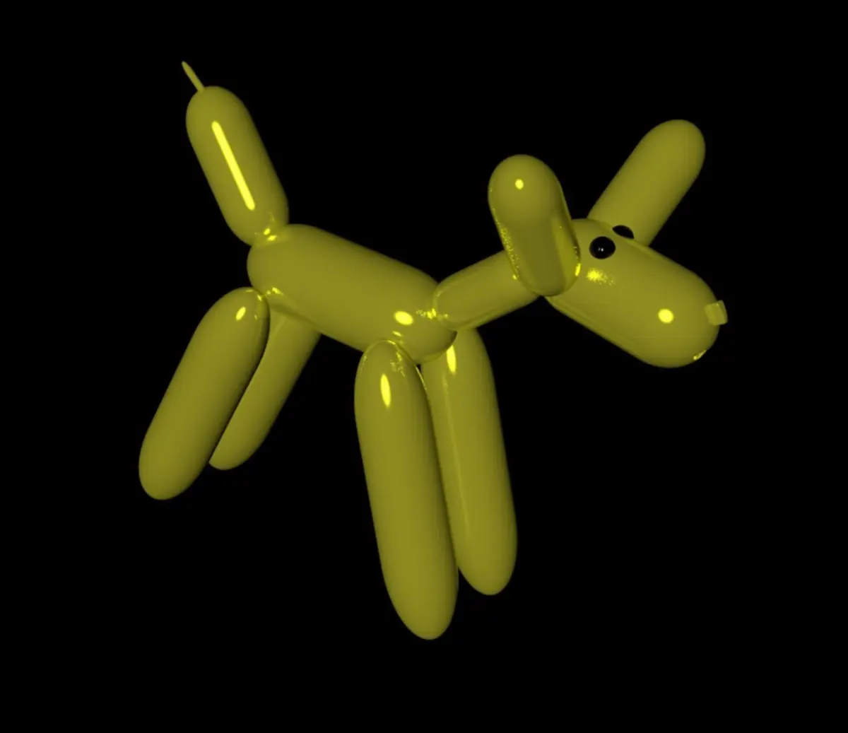 3d ballon dog with yellow color.it can use as toy for interior design .it can use in cartoon movie .