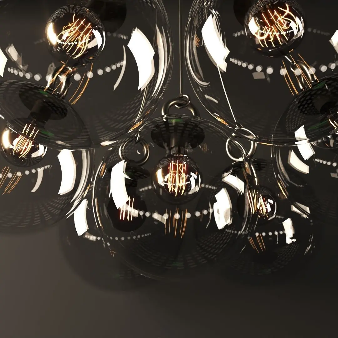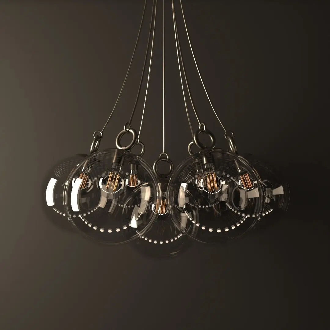 Materials have been tested for both VRray Next and VRayGPU. Glass orbs with vintage lightbulbls add a retro touch to a very modern looking light fixture. Perfect for dining rooms and commercial spaces.