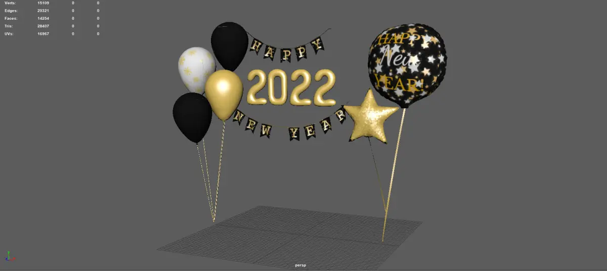 3D HD Model of BALLOONS HAPPY NEW YEAR
