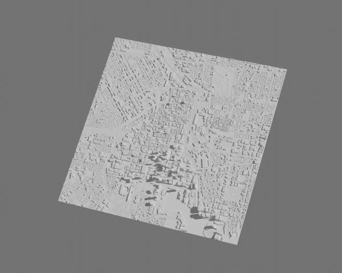 Have you ever wanted to see the complexity and beauty of a city like Baltimore from a birds-eye perspective? With our high resolution 3d model of London you can 3d print yourself a whole city in the span of a few hours. This model is divided into 16 sections for ease of printing, each of which covers 1 km^2 or 0.4 square miles. In Total 16km2 or 6 mi2 are covered by this 3d model of Baltimore.