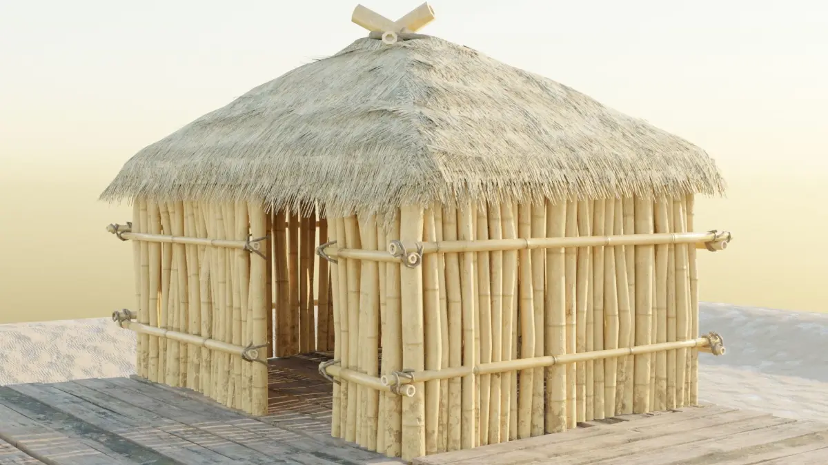 -=TEXTURES=-The model is built with high quality PBR-materials so you can achieve the same render result also on other platforms/softwares. The textures are separated into 6 different parts, each containing Albedo, Normal and Roughness maps.2k maps: (2048x2048)-Bamboo_Wall -Bamboo_Additional -Boards -Palm_Logs