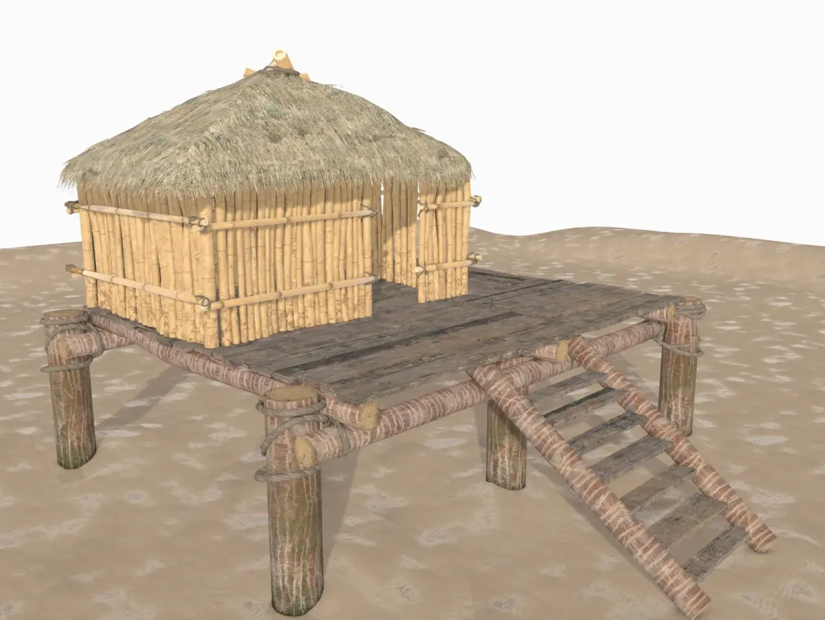 This is a 3D-model of a tropical beach hut made from bamboo, palm trunks and a thatched roof which fits perfectly into your beach/tropical/holiday/shipwreck/… scene or gameThis model was built with the focus on Low-Poly modeling while still having a high quality to allow close-up shots for your scenes.The topology is clean and consists of Quad-Faces only, the UV-Map is also clean and overlapping to optimize performance.