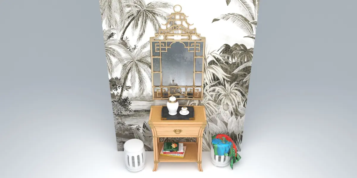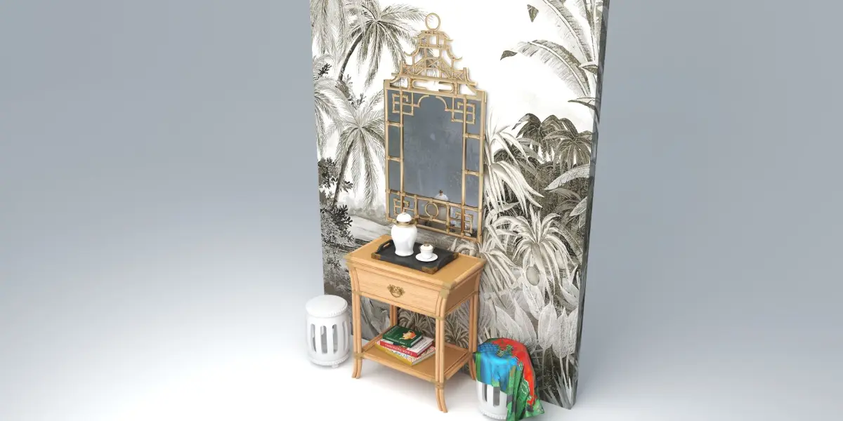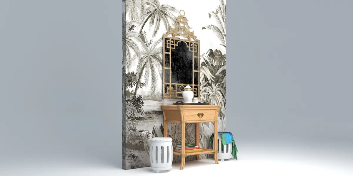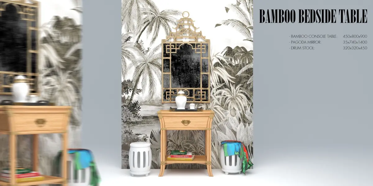 Console table is suited for a large variety of interiors. The bottom shelf provides more alternatives for display.Bamboo Furniture was inspiration for the Bamboo console/sofa back table.