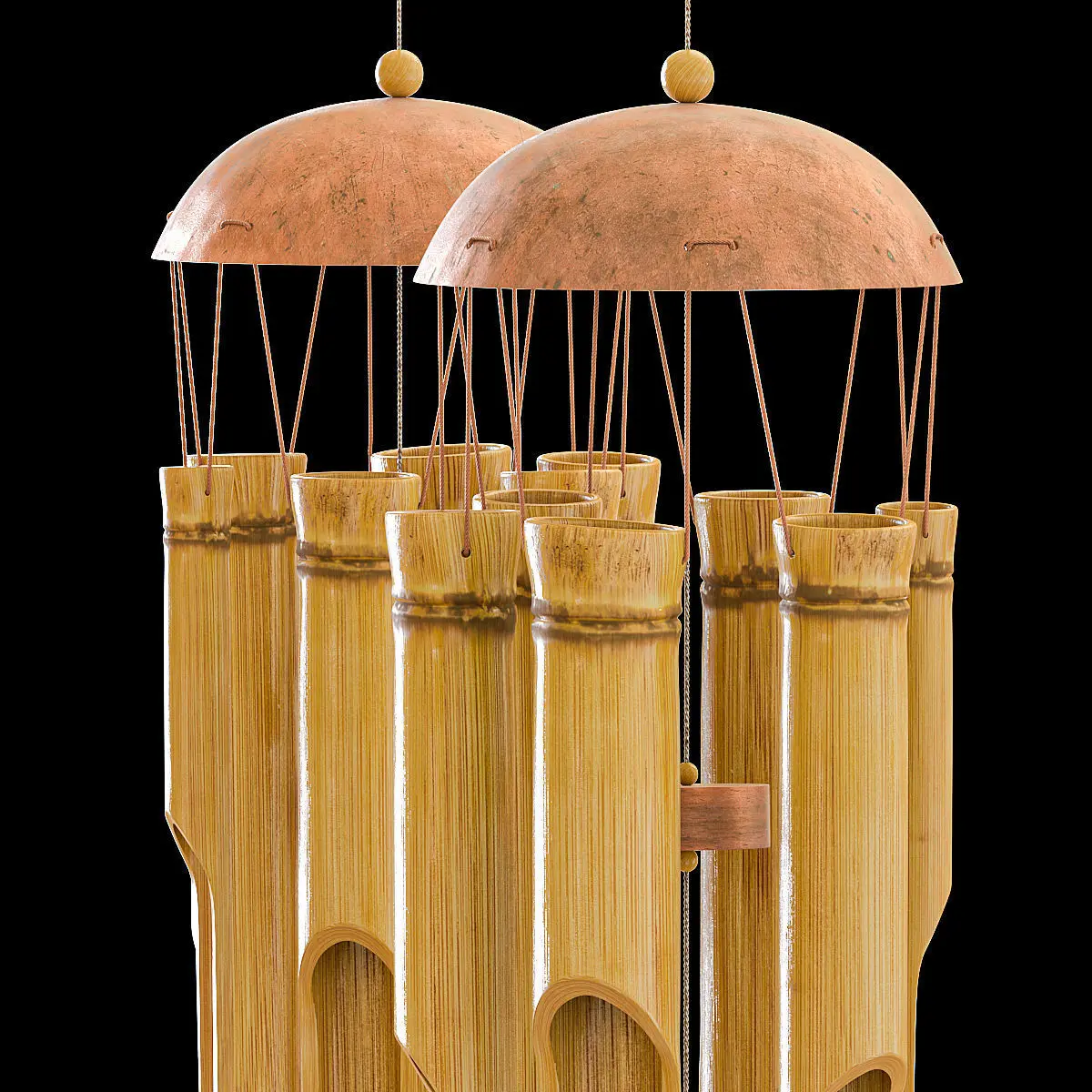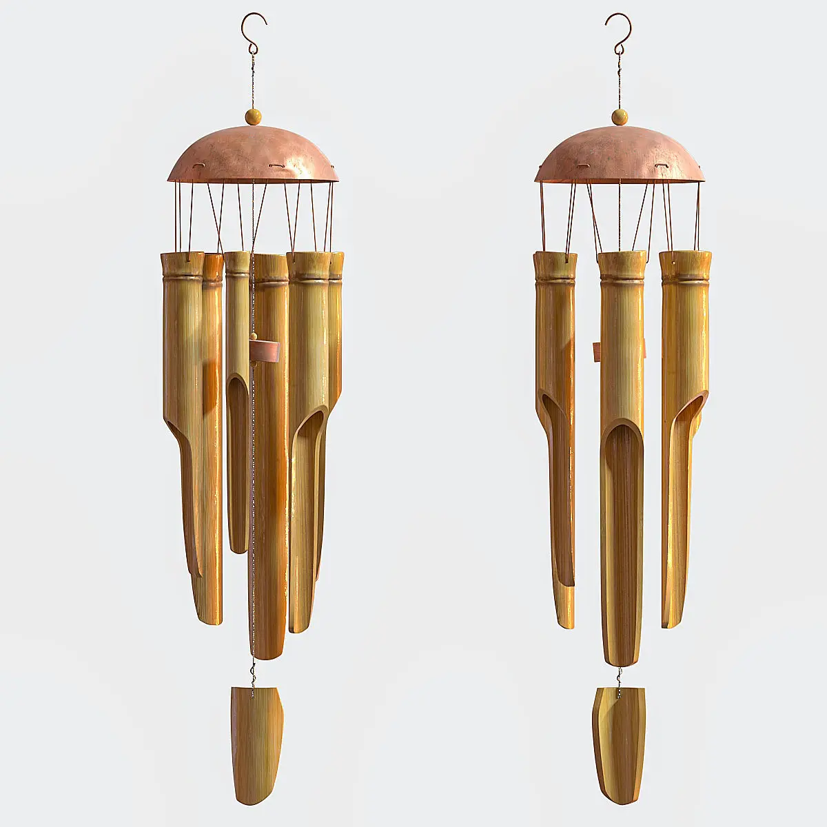 Bamboo bellAll elements have unique names in English. All textures also have unique names in English. Cleaned up texture paths. In the scene, only the model itself with textures, without garbage geometry, cameras and light.All products are made for anti-aliasing. Applied Turbosmooth modifier with render iters = 2Who works in V-Ray version lower than 3.1, be careful, in the materials in the BRDF section there is Microfaset GTR (GGX), if your version is older than 3.1, then the BRDF field will be empty. Choose Blinn, Phong or Ward - which is preferable for you. For Corona render, it is recommended to install at least version 1.5, since the glossiness of the materials is adjusted.Manufacturer link:https://www.walmart.com/ip/Akoyovwerve-Bamboo-Wind-Chimes-Big-Bell-Tube-Coconut-Wood-Handmade-Indoor-And-Outdoor-Wall-Hanging-Wind-Chime-Decorations/179670868