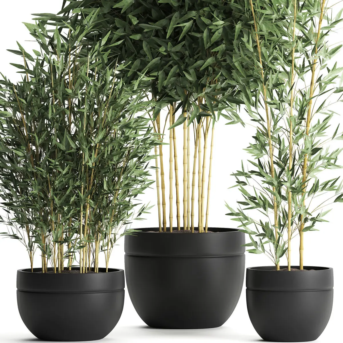 Bamboo bush for the interior in a black flowerpot 582 3D model