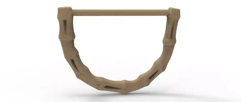 3D model developed in injected ABS, ideal for use in handbags, purses, and premium fashion accessories.The piece features a bamboo-inspired design, with texture and form that faithfully reproduce the natural look of bamboo, adding sophistication and lightness to any product.