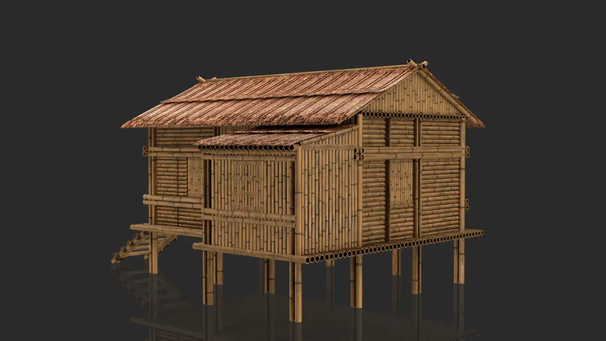 Bamboo House 3D Model with interior and exterior .Ready for any project like game, bfx,cartoon video, or making beautiful renders.The texture and material are prorerly applied to the model.It's Perfect for project backgrounds, landscapes and cityscapes.