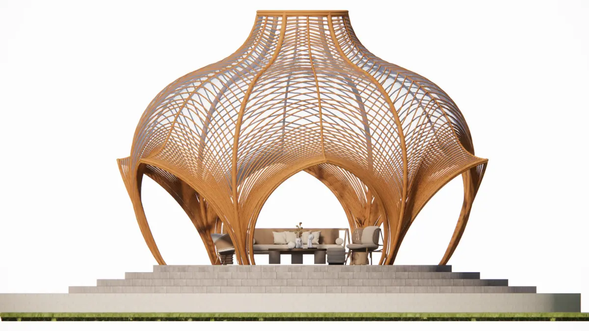 These designs achieve 93% material circularity while providing 15+ functional configurations. The organic forms and technical bamboo engineering create viral visual appeal for architecture platforms.