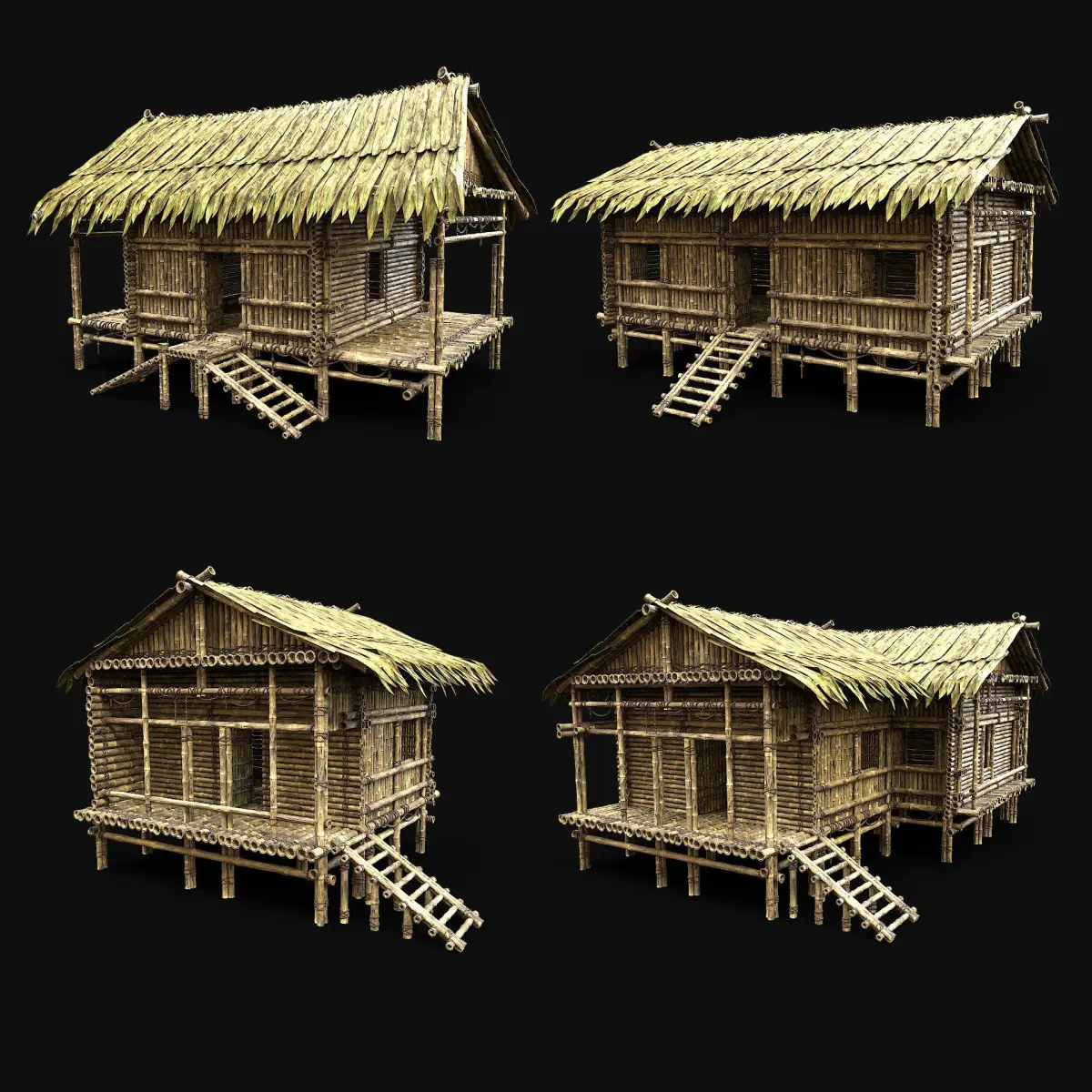 - Next gen, AAA quality, 4 game-ready models of generic bamboo huts.